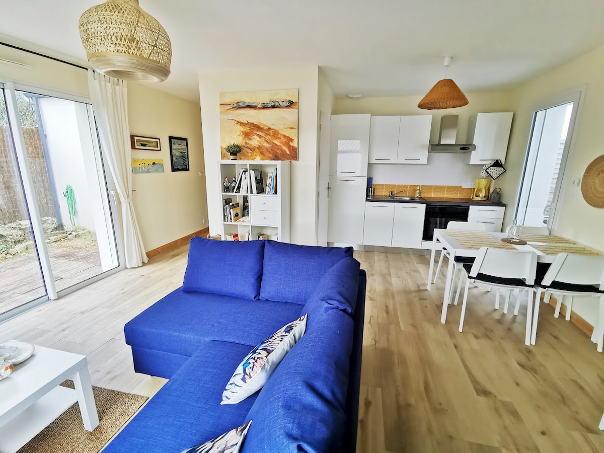 Được xây dựng vào năm 2019, ngôi nhà của tôi nằm trong khu vực yên tĩnh của cul-de-sac 750 m từ bãi biển Etel nước và các cửa hàng. Nó cung cấp một phòng khách sáng sủa với ghế sofa có thể chuyển đổi,(140x200), một nhà bếp mở được trang bị, một phòng ngủ với tủ quần áo, giường 160x200, một phòng ngủ với 2 giường 90x200, một phòng tắm với nhà vệ sinh, phòng giặt ủi. Nội thất mới, thoải mái và trong suốt. Phòng xe đạp. Vườn mở với sân thượng hướng về phía nam, sân hiên có sân thượng. BBQ. Bãi đỗ xe riêng. Đã xem xét thú cưng.