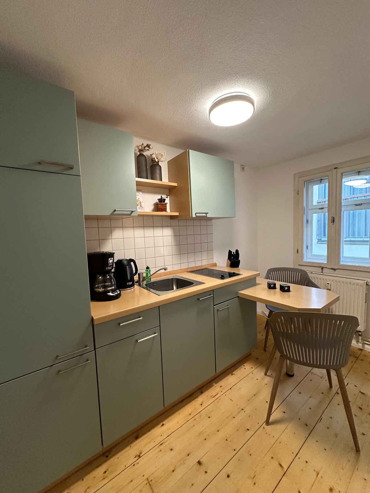 Căn hộ đầy phong cách của tôi nằm ở Eckermannhaus lịch sử ở phố cổ Weimar, nơi ở cũ của thư ký Goethe. Nó cung cấp giường lò xo hộp lớn, internet tốc độ cao và phòng tắm vượt thời gian với bồn tắm. Bếp đầy đủ tiện nghi cho phép bạn chuẩn bị bữa ăn của riêng mình. Lý tưởng cho những ai muốn tận hưởng sự thoải mái hiện đại trong bầu không khí lịch sử – ngay tại trung tâm văn hóa của Weimar.