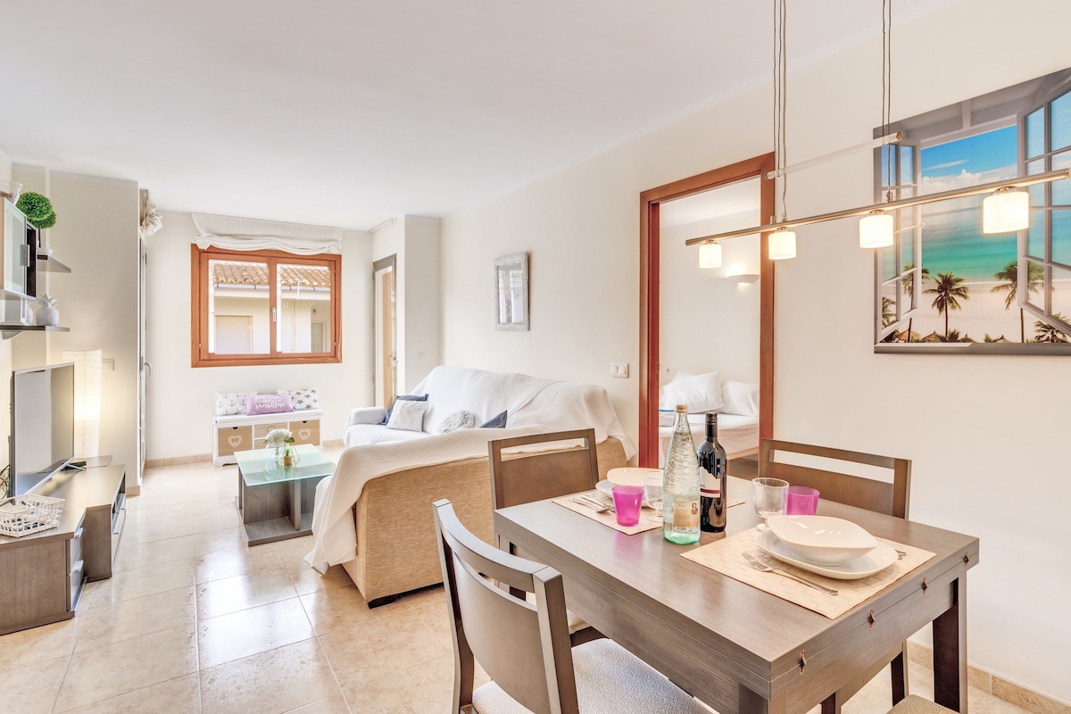 Căn hộ đẹp với tầm nhìn đặc biệt ra biển. Nằm trên bãi biển đầy cát của Vịnh Alcudia. Nó có hai phòng ngủ đôi: một phòng có giường đôi và một phòng có hai giường đơn. Chúng tôi cũng có một phòng khách - phòng ăn với sân thượng nhìn ra đại dương, bếp đầy đủ tiện nghi, phòng tắm có vòi sen và nhà vệ sinh.