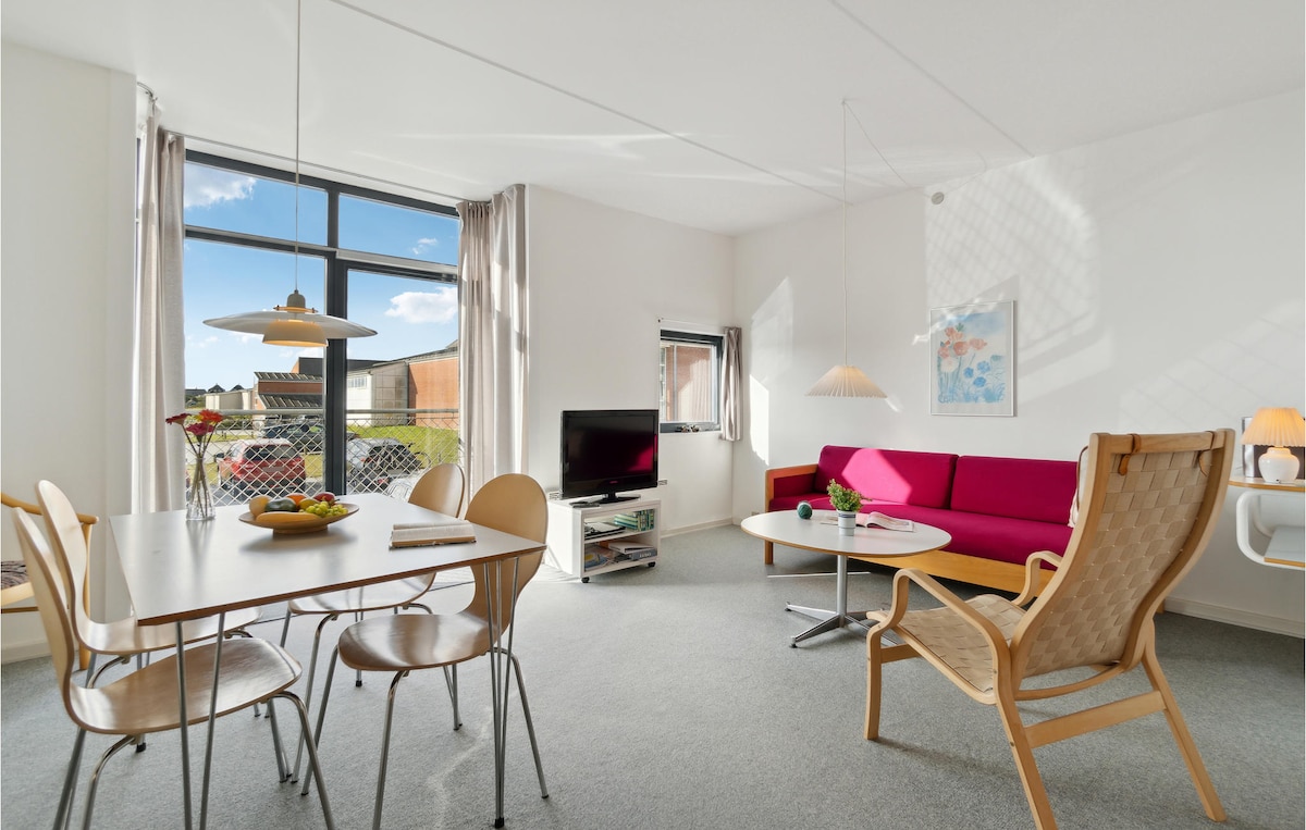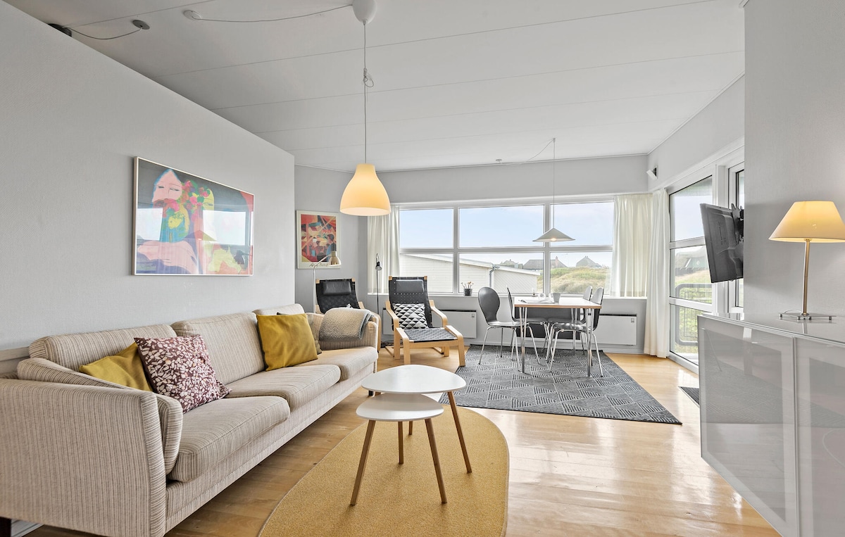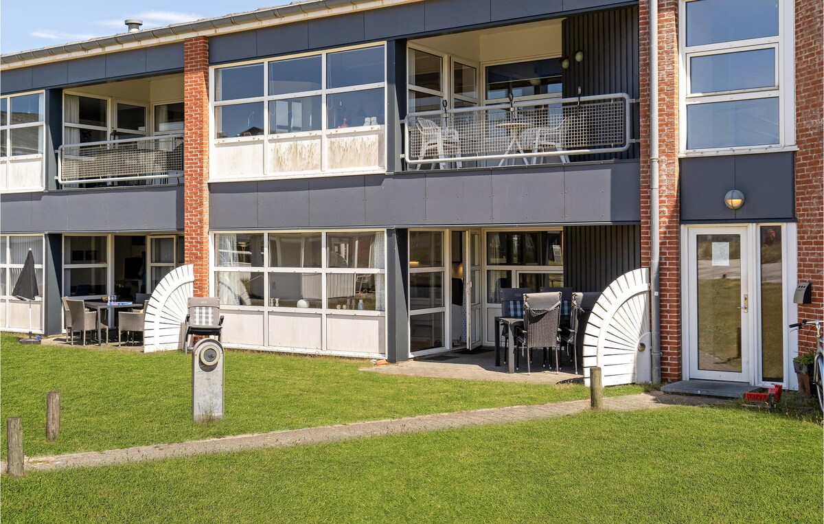 Căn hộ tầng 1 với tầm nhìn ra biển tuyệt đẹp và lối đi thẳng ra bãi biển. Căn hộ mới được cải tạo vào năm 2021. Có một khu vườn nhỏ riêng với sân thượng có ghế tựa và bàn ghế ngoài trời. Căn hộ có một hành lang với lối vào căn hộ. Phòng khách sáng sủa với tầm nhìn ra biển tuyệt đẹp, nhìn ra cảng Esbjerg và Fanø. 2 phòng ngủ tốt, một phòng có giường đôi và phòng còn lại có 2 giường đơn. Nhà bếp với đầy đủ đồ gia dụng và tầm nhìn ra biển. Nhà vệ sinh có bồn cầu và bồn rửa tay. Phòng tắm đẹp. Tối đa 1 con chó. Không được phép mang theo mèo.