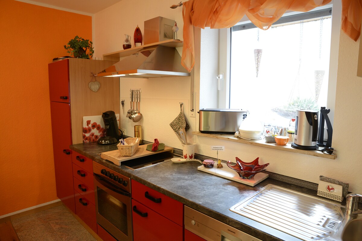 Schöne 1 1/2 Zimmer Souterrain Ferienwohnung für 2 Personen 48qm, ausgestattet mit Massivholz- und Natursteinböden, Allergiker geeignet, Nichtraucher. Keine Vermietung an Monteure. Es erwartet Sie eine ruhig gelegene Wohnung in Weinbergnähe. In der komplett eingerichteten Küche ist es kein Problem Speisen selber zu zubereiten. Handtücher und Bettwäsche werden gestellt, keine Endreinigungsgebühr