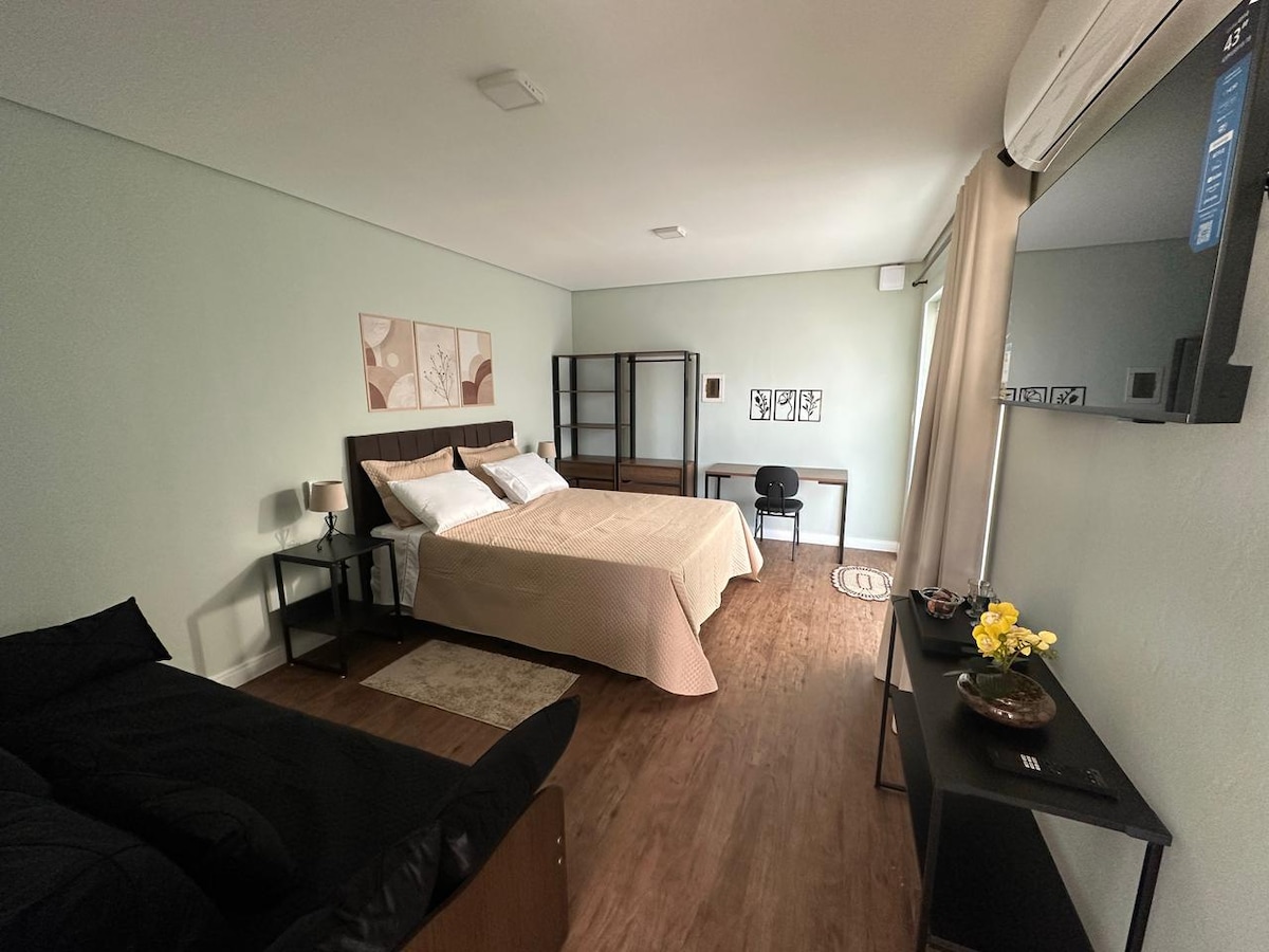 Chào mừng bạn đến với Traveler's Refuge! Nếu bạn đang tìm kiếm sự thoải mái và yên tĩnh, đây chính là nơi bạn cần. Căn hộ trong một căn hộ chung cư có cổng, hiện đại và được trang bị, gần trung tâm và các địa danh chính của thành phố. Ngủ thoải mái cho tối đa 4 người. Khoảng cách từ các nhà máy rượu vang lớn trong khu vực: Xưởng rượu Guaspari: 1,2 km Xưởng rượu Floresta São Pedro: 4,0 km Xưởng rượu InnVernia: 6,5 km Xưởng rượu Amana: 7,9 km Xưởng rượu Mirantus: 12 km Xưởng rượu Terra Nossa: 13 km Chúng tôi sẽ rất vui được chào đón bạn!