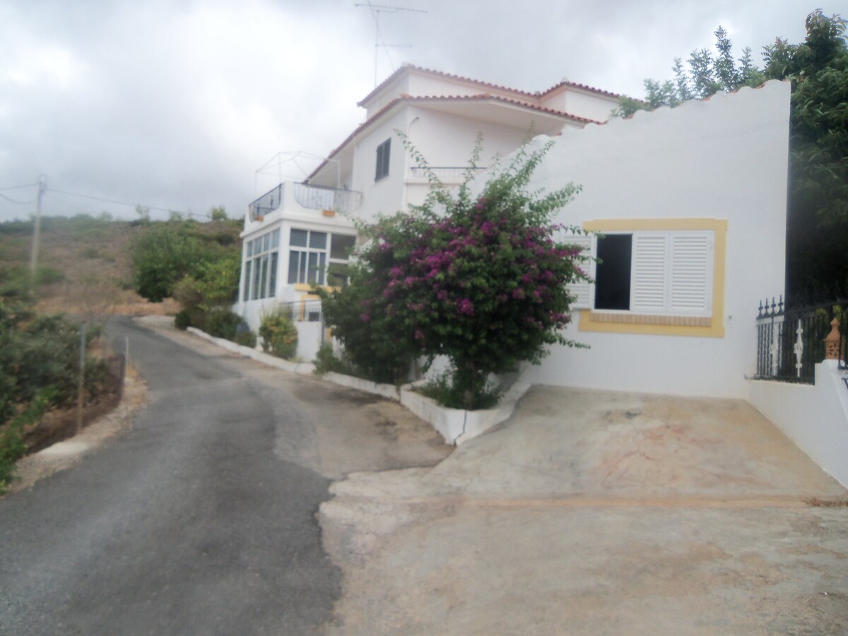 The house is located 12km.from airport Faro,near the village Estói. House located between the hills, when can enjoy beautiful view . This place is quite end in the nature, where can wake up with birdsong . Also in the property are garden and a chicken coop.There is also a family of ostriches. House has large terrace .Inside room with double bed,loft room 2 single beds .If you want you can make double bed ,roof windows let you look stars.