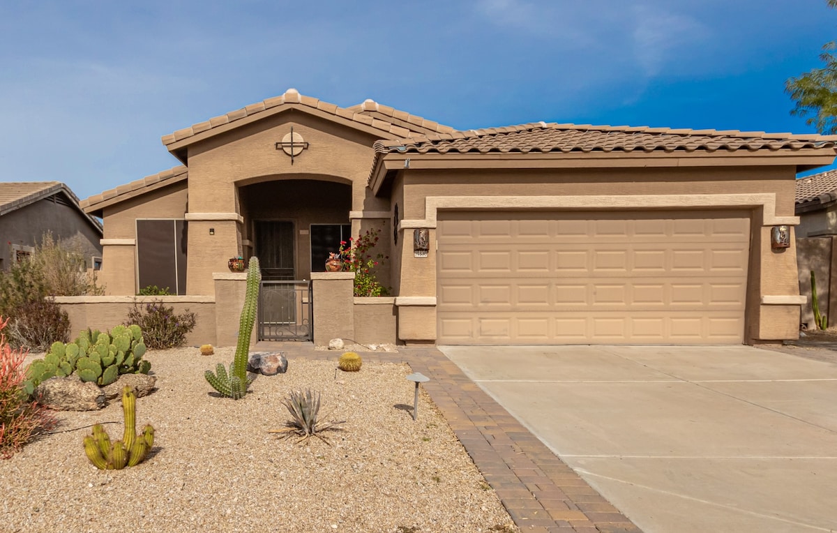 Welcome to your desert escape! This stunning new home offers everything you need for a relaxing, sun-soaked getaway — including a sparkling private pool, contemporary design, and breathtaking mountain views. Nestled in a quiet, upscale neighborhood, the home features spacious living areas, stylish decor, and many comforts of home. Plus, we're always upgrading and improving to make your stay even better. Whether you're here to explore the Phoenix area or just unwind, this is the ideal home base.