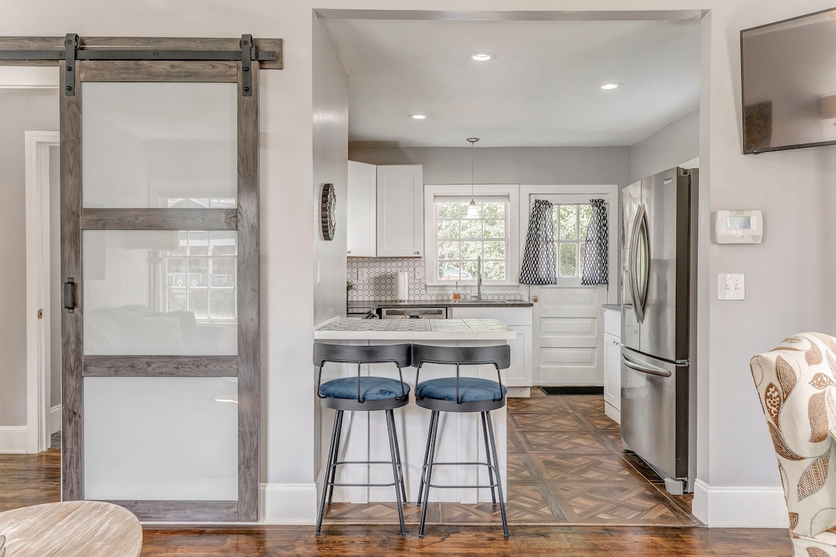 Your family will be close to everything when you stay at this downtown Cartersville home. Walk to all downtown shops and restaurants. Relax in the mornings drinking coffee on the attached screened in porch. Spacious parking lot behind home that is private and secure. Family friendly setup with a huge sectional couch that pulls out into a full queen sleeper with all needed linens and pillows. Coffee bar setup, dedicated workspace with printer, wireless wifi and tv’s in each room.