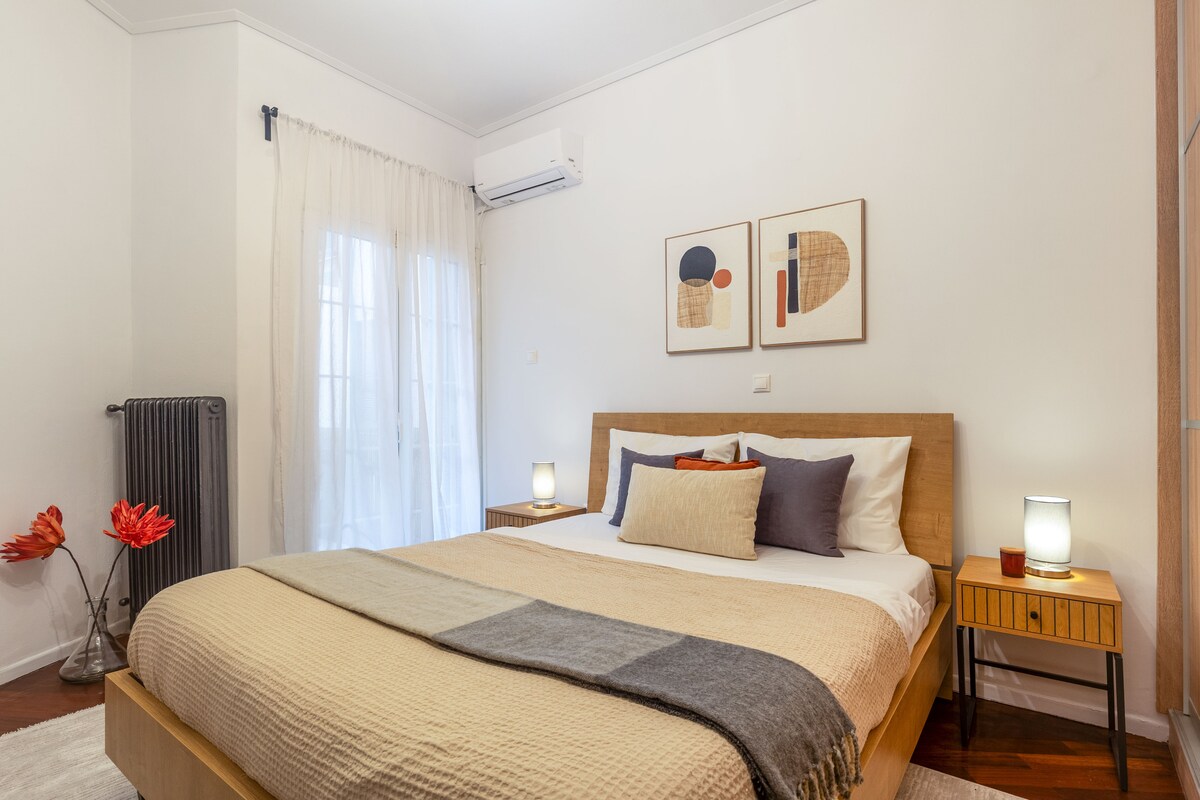 Enjoy a stylish experience in one of Athens' most lively neighbourhoods. Our fully renovated one (1) bedroom flat is located on 4th floor of a residential establishment offering a homey atmosphere, view of the Acropolis from the patio and easy access to the city's most famous attractions. The sunny flat has all necessary amenities for longer stays with the special mattress being the highlight for a comfy sleep.