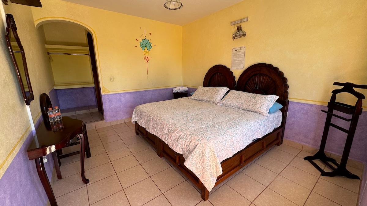 Khách sạn Quinta Mirador Zacualli nằm ở Bernal, hãy đến và tận hưởng trải nghiệm tuyệt vời tại điểm đến đầy ma thuật, thiên nhiên và tầm nhìn tuyệt vời này, một nơi lý tưởng đầy thoải mái và thoải mái cho cả gia đình bạn. Bạn sẽ có thể tận hưởng hồ bơi ngoài trời của chúng tôi (không khí tạm thời) và chỗ đỗ xe miễn phí. Phòng mộc mạc với tiện nghi lý tưởng, giường cỡ King cho 2 người và phòng tắm riêng. . Chỉ cách Vườn nho Aztec và Freixenet 15 phút.
