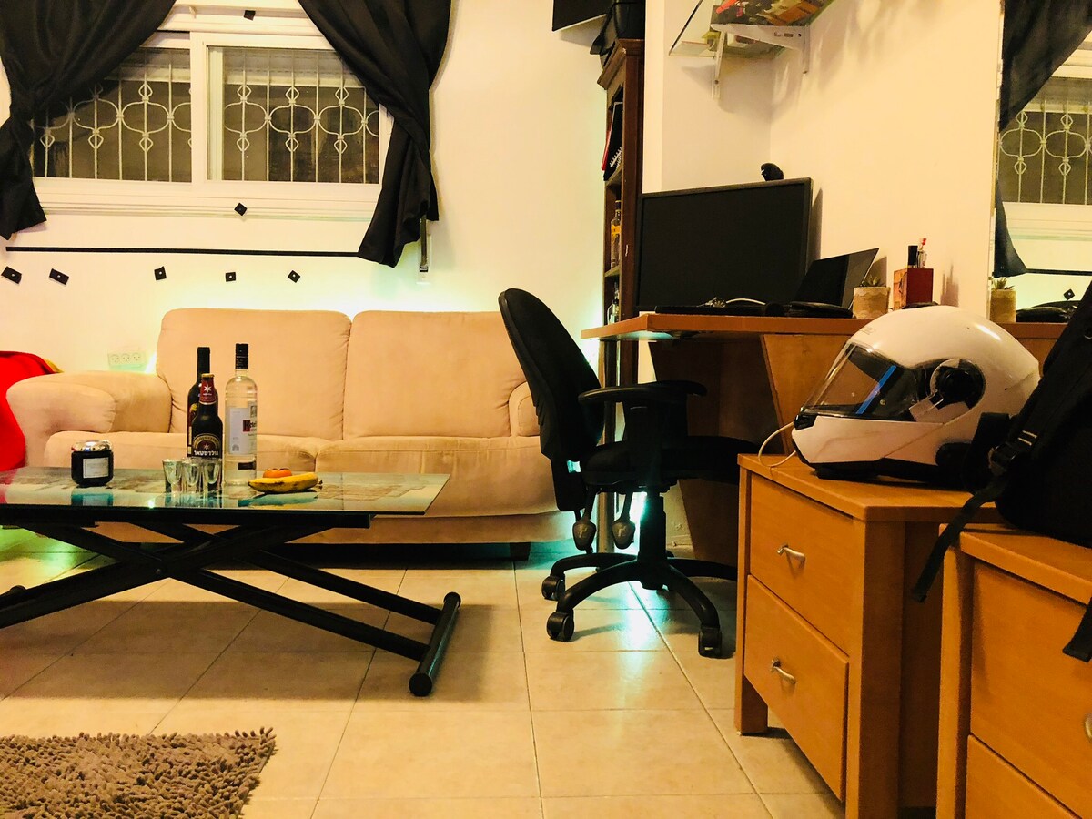 Căn hộ nhỏ ấm cúng ở Trung tâm Tel Aviv, Ghế sofa ấm cúng, không gian làm việc ấm cúng, nhà bếp hữu ích với mọi thứ và TV thông minh với Netflix -4K Điều mà tôi yêu thích nó có thể trở nên hoàn toàn tối - đối với những người thích ngủ và thức dậy mà không biết thời gian là gì.. :) Ngoài ra, nó nằm ở tầng trệt - vì vậy không cần phải leo cầu thang trong cái nóng và độ ẩm:) Nhược điểm trong các ngày trong tuần là có xe buýt và tiếng ồn từ việc xây dựng tàu điện ngầm mới trên khắp tất cả các Telpriv