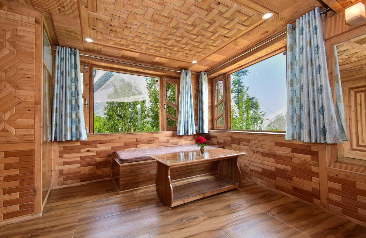 Hãy đến thăm chúng tôi trong ngôi làng nhỏ kỳ lạ của chúng tôi có tên là Cheog gần Fagu, nơi thời gian dừng lại khi mây tan vào nhà của chúng tôi mỗi buổi sáng . Được bao quanh bởi vườn táo, nơi này chắc chắn sẽ mê hoặc bạn với vẻ đẹp của nó, Trải nghiệm các món ăn truyền thống của người dân địa phương, Gần gũi với thiên nhiên tại nơi nghỉ dưỡng lý tưởng của chúng tôi ở một trong những khu rừng rộng lớn nhất châu Á, Thư giãn và trẻ hóa . Ở đây, hoàng hôn gần như là tâm linh. Phù hợp với các cặp đôi, những người phiêu lưu một mình, gia đình, nhóm lớn và thú cưng.