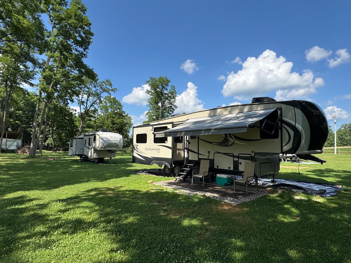 Get away from it all when you stay under the stars. We have 3 campers on 2 acres with electric and water. There are also 2 ports potties on site that are cleaned weekly. Campers have coffee pots and toasters and utensils. Bring your sheets and blankets and pillows!