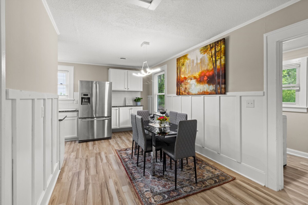 1940 Haymount lịch sử~ Ngôi nhà hoàn toàn được khôi phục và trang bị đẹp mắt ngay trung tâm khu phố lịch sử xinh đẹp của Fayetteville. Thư giãn với lòng hiếu khách miền Nam ngọt ngào với một cuốn sách hay trên hiên nhà, hoặc thăm bạn bè và gia đình ở hiên nhà riêng hoặc xung quanh một ngọn lửa trại ấm cúng. Với một chuyến đi bộ thú vị đến trung tâm thành phố lịch sử và khu thương mại Haymount, được trang bị thời trang và công nghệ mới nhất tại nhà, bạn chắc chắn sẽ thích Bữa sáng tại Tiffany 's!
