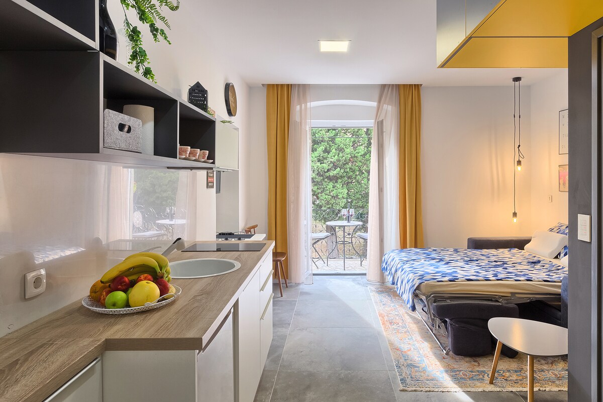 Một studio ấm cúng rộng 25 m2 nằm trong khu phố lịch sử tại một trong những biệt thự cổ Áo-Hung, một trong những con phố nổi tiếng nhất ở Pula, khu phố ưu tú cũ của Hải quân Áo Hungary, nơi có các sĩ quan cao cấp. Căn hộ được trang bị nội thất phong cách để bạn có thời gian lưu trú thoải mái tại Pula.