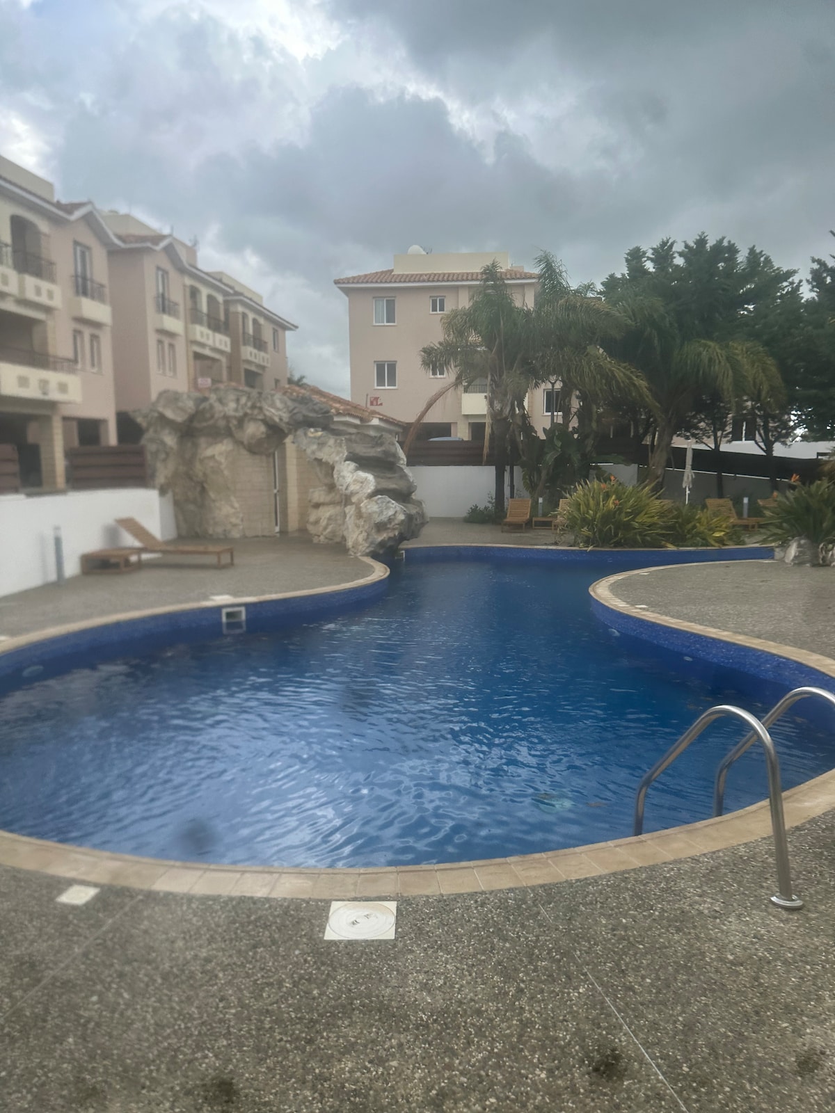Toàn bộ căn hộ với ban công lớn và hồ bơi chung.