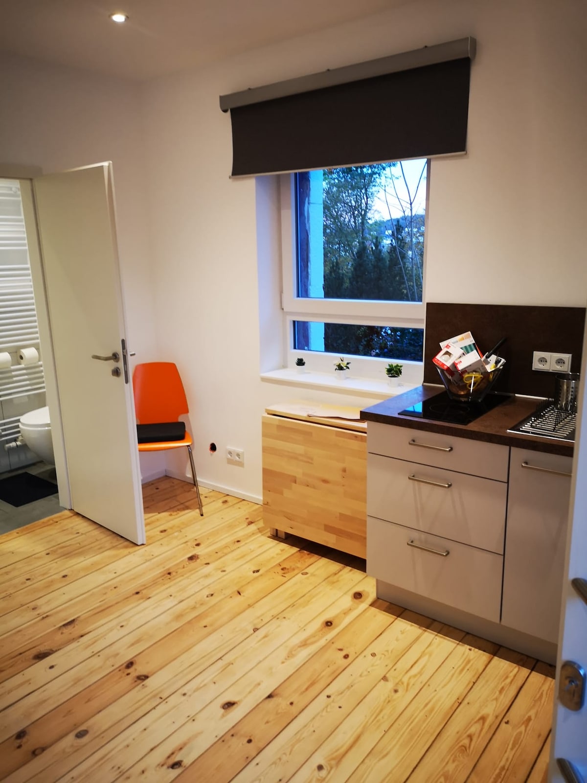 Căn hộ một phòng được cải tạo hoàn toàn và hiện đại của chúng tôi cung cấp cho bạn mọi thứ bạn cần cho một kỳ nghỉ thoải mái và thư giãn trong một không gian nhỏ – hoàn hảo cho các cặp đôi, khách đi một mình hoặc khách đi công tác. Khu vực sinh hoạt và ngủ nghỉ kết hợp sáng sủa và thân thiện. Thông qua cánh cửa lớn, bạn có thể sử dụng một sân thượng nhỏ, nơi bạn có thể tận hưởng ánh nắng mặt trời nhìn ra Lâu đài Thượng. 🏰