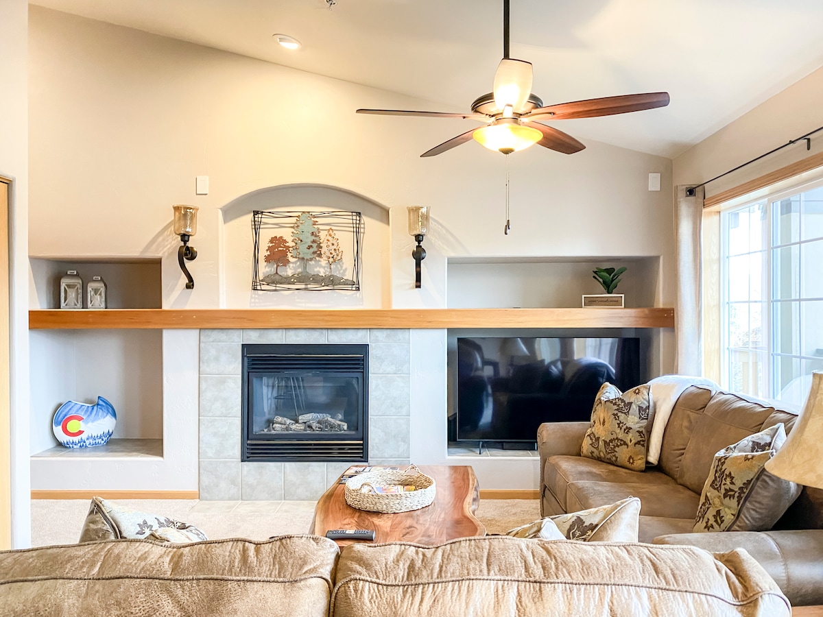 1BR, cập nhật Rockies Condo. Sàn, sơn và nội thất mới. Vị trí tuyệt vời - dưới 10 phút đi bộ hoặc xe buýt thành phố miễn phí (mùa đông) đến khu vực cơ sở! Giường cỡ King trong phòng ngủ, lò sưởi, ban công, bàn ăn nhỏ, bếp đầy đủ tiện nghi và tủ khóa trượt tuyết. Khu phức hợp bao gồm hồ bơi nước nóng (mở cửa quanh năm), hai bồn tắm nước nóng, giặt ủi, vỉ nướng, sân bóng chuyền cát và bãi đỗ xe miễn phí. Gần căn cứ (có thể đi bộ), cửa hàng tạp hóa và nhà hàng, và cách trung tâm thành phố 2 dặm. Hãy đến và tận hưởng tất cả Steamboat Springs!