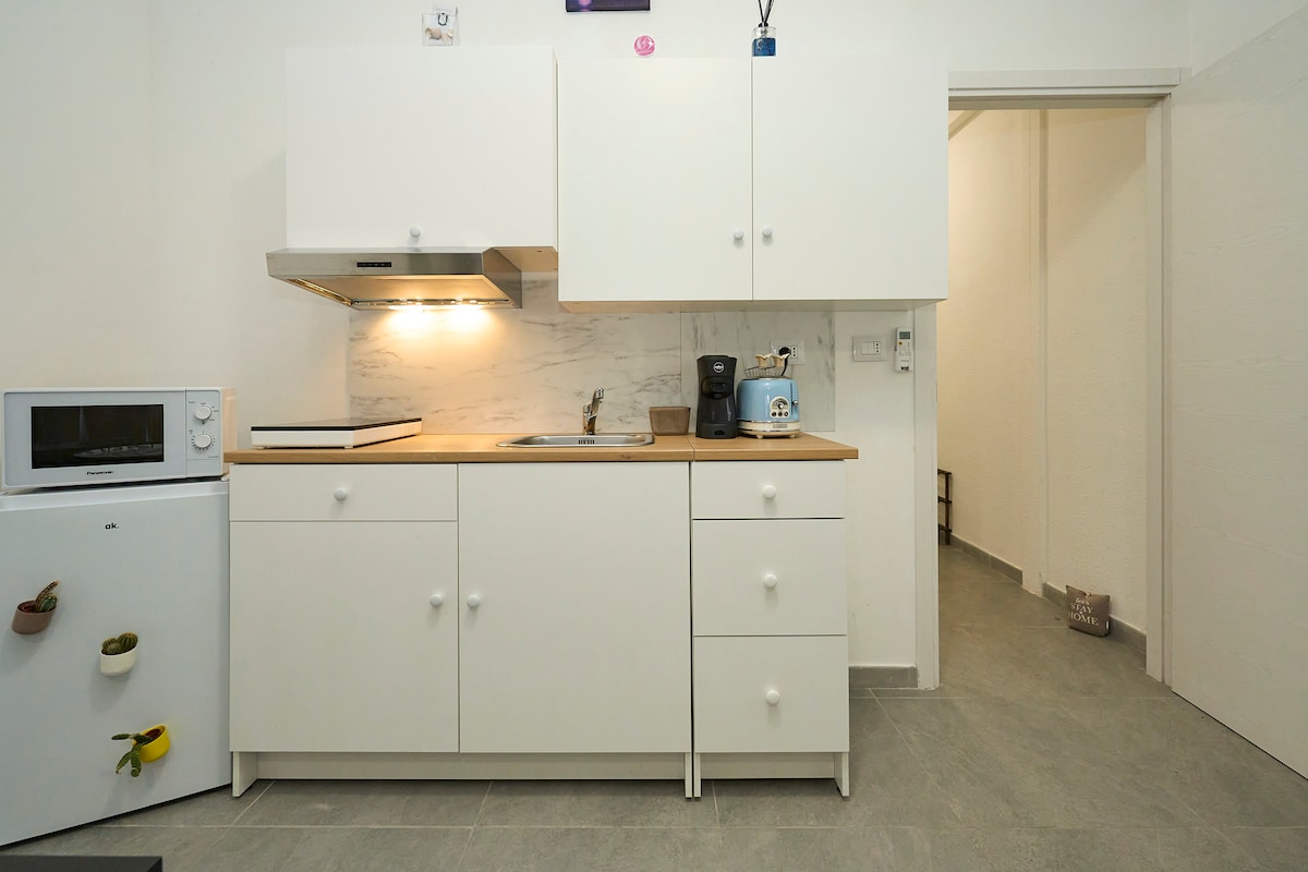 Một căn hộ 1 phòng ngủ ấm cúng với loggia được bao quanh bởi cây xanh của Milano 3. Nó hướng ra hồ trung tâm và chỉ cách quảng trường sôi động và Câu lạc bộ thể thao một đoạn đi bộ ngắn. Nó nằm ở tầng hai và có một phòng ngủ với giường đôi, tủ quần áo và bàn làm việc. Một phòng khách sáng sủa và rộng rãi với giường sofa đôi, bếp nhỏ được trang bị đầy đủ tiện nghi và khu vực ăn uống. Hoàn thiện không gian là một phòng tắm với vòi sen và một mái hiên được trang bị khu vực ăn uống.