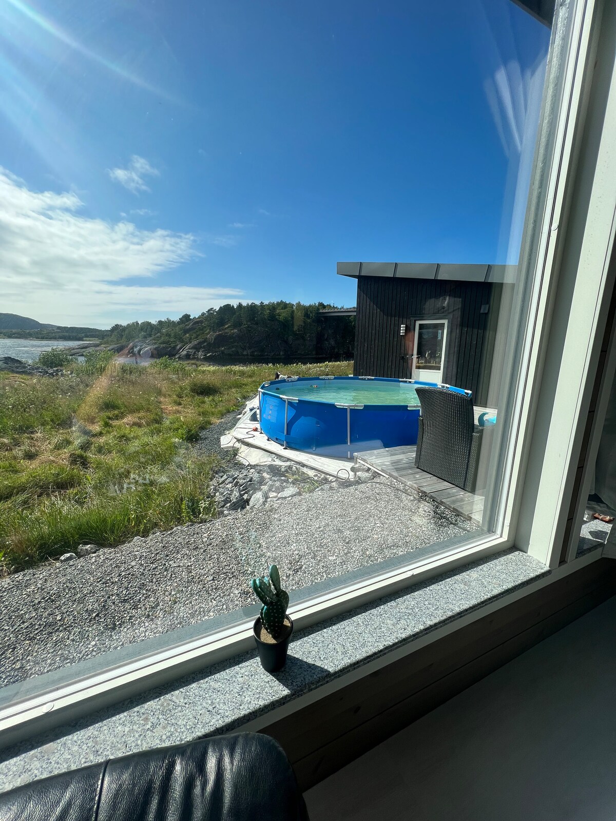 Pause fra hverdagen? Opplev vakre solnedganger og vær på nært hold! Hytta ligger i enden av en blindvei, usjenert beliggenhet med panorama utsikt. Moderne design. Kun deg og naturen. Et fantastisk utgangspunkt for fiske, kajakk, SUP og strandliv. Et rikt dyreliv, se havørnen som kan sveve sakte forbi. Stor hage med gressplen, store terrasser. Sol hele dagen. Benker og bord til å samle alle til et felles måltid. Pizzaovn til å lage Italienske godsaker. Oppskrift deler vi gjerne med deg!:-)