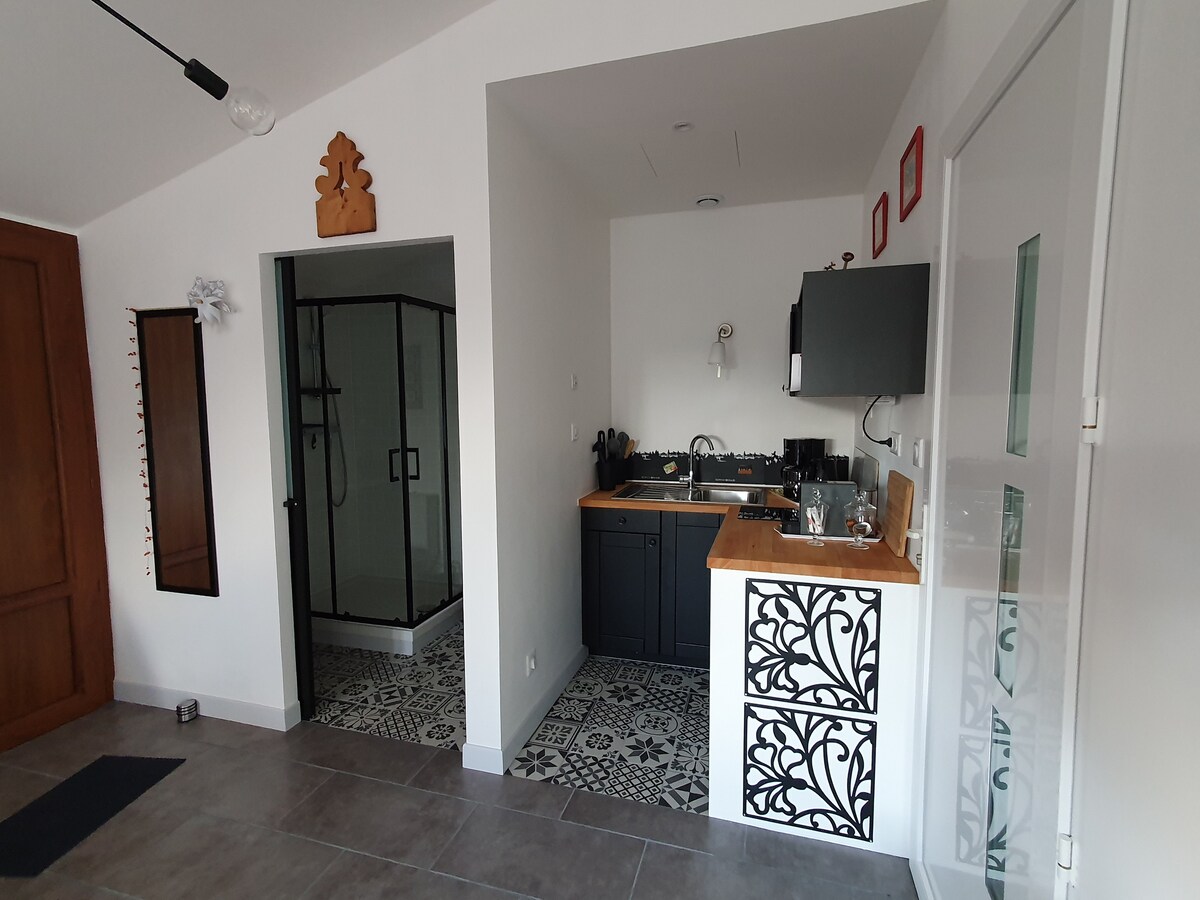 Studio quyến rũ với phòng tắm vòi sen và bếp nhỏ để bạn thoải mái ở tầng trệt của một ngôi nhà lịch sử nhìn ra Vườn nho Pouilly-Fuissé. Chào mừng bạn đến với một trong những ngôi nhà cổ nhất ở làng Vergisson, từng là cửa hàng tạp hóa địa phương, hiện đã được cải tạo thành một studio thoải mái đầy cá tính cho thời gian lưu trú của bạn. Nằm ở tầng trệt, phòng của chúng tôi, với lối vào riêng cung cấp tất cả các tiện nghi để làm cho thời gian lưu trú của bạn dễ chịu.