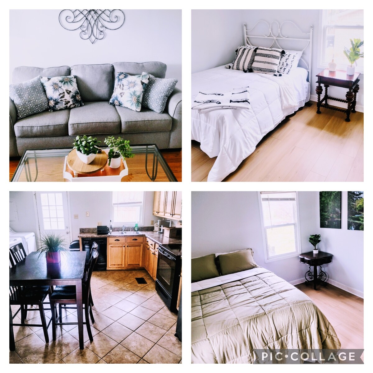 A little piece of Heaven is what my dad always called it! The basement has been turned into a nice, private living area created for fishermen, guest visiting our Fame recording studio or the ultimate family vacation. If you have a little one we can also furnish a crib, high chair and possibly other necessities you may need to make your trip a little lighter! You have your own deck halfway to the water and full access to the pier. Also provide as many life jackets that you may need. Steenson Hollow marina and boat ramp is located 2 doors down for easy access for the boaters. Cleats, bumpers and ladders are also located on the pier. For history lovers Wilson Dam is just right around the corner, which is also a great place to pick up some gorgeous driftwood. We guarantee you will love it as much as we do!