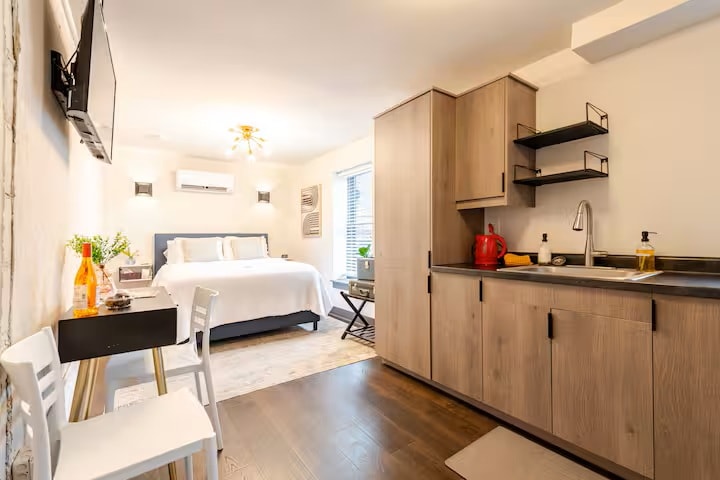 Căn hộ studio độc đáo và hấp dẫn. Lên kế hoạch nghỉ ngơi trong khu nghỉ dưỡng dưới tầng hầm riêng này. TV 55”mới với quyền truy cập Netflix hoặc có lẽ là một chiếc Rip Van Winkle nghỉ ngơi trên giường cỡ Queen (hmmmmm rất thoải mái). Thích âu yếm dưới chăn và chăn mềm nhẹ thoáng mát. Đi bộ hoặc lái xe đến các cửa hàng và nhà hàng cách đó khoảng 5/6 dãy nhà.