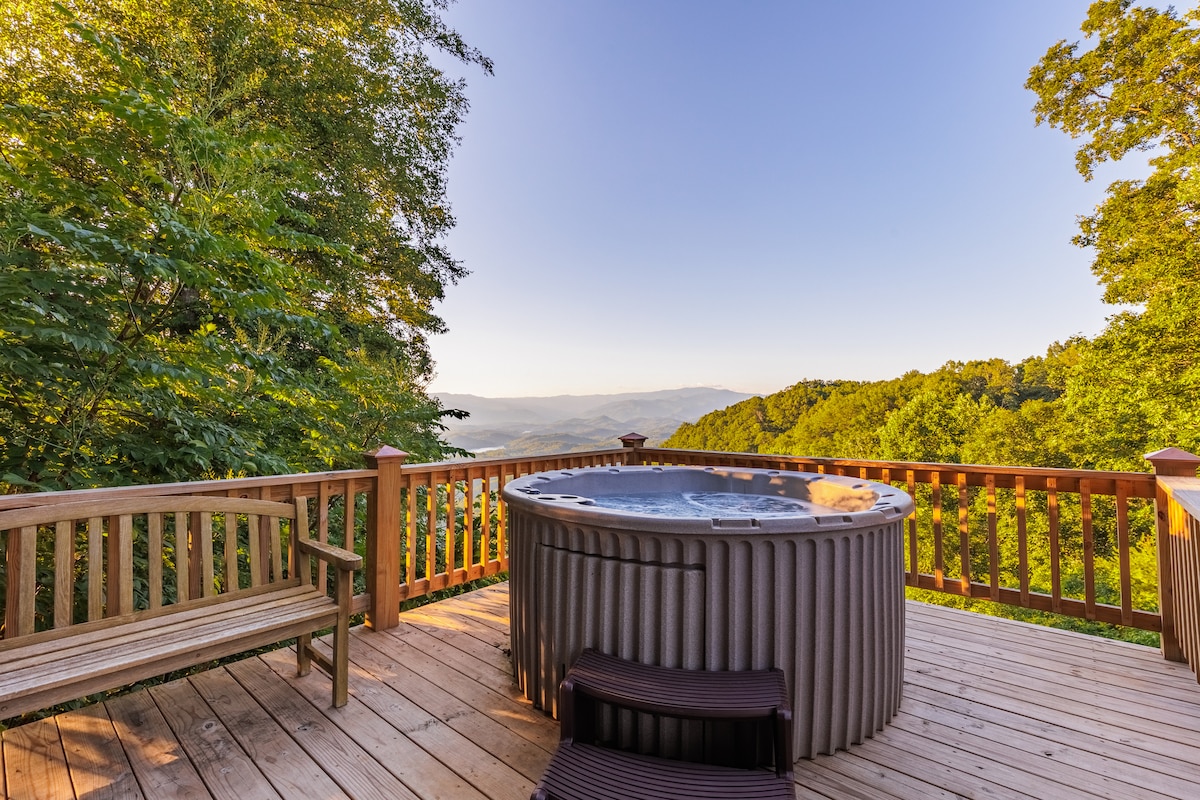 “Best Views” is what most guests say. Why? TWO unbelievable $1,000,000 views from this upscale mountain chalet. To the north, a view of Fontana Lake framed by GSMNP (30 min drive) and Clingman's Dome. To the south, layers upon layers of The Nantahala National Forest. Just read our reVIEWS. Perfect for a romantic getaway, couples retreat, or family vacation. The inner beauty and functionality is only rivaled by the outdoor covered living spaces, hot tub deck, and fire pit.