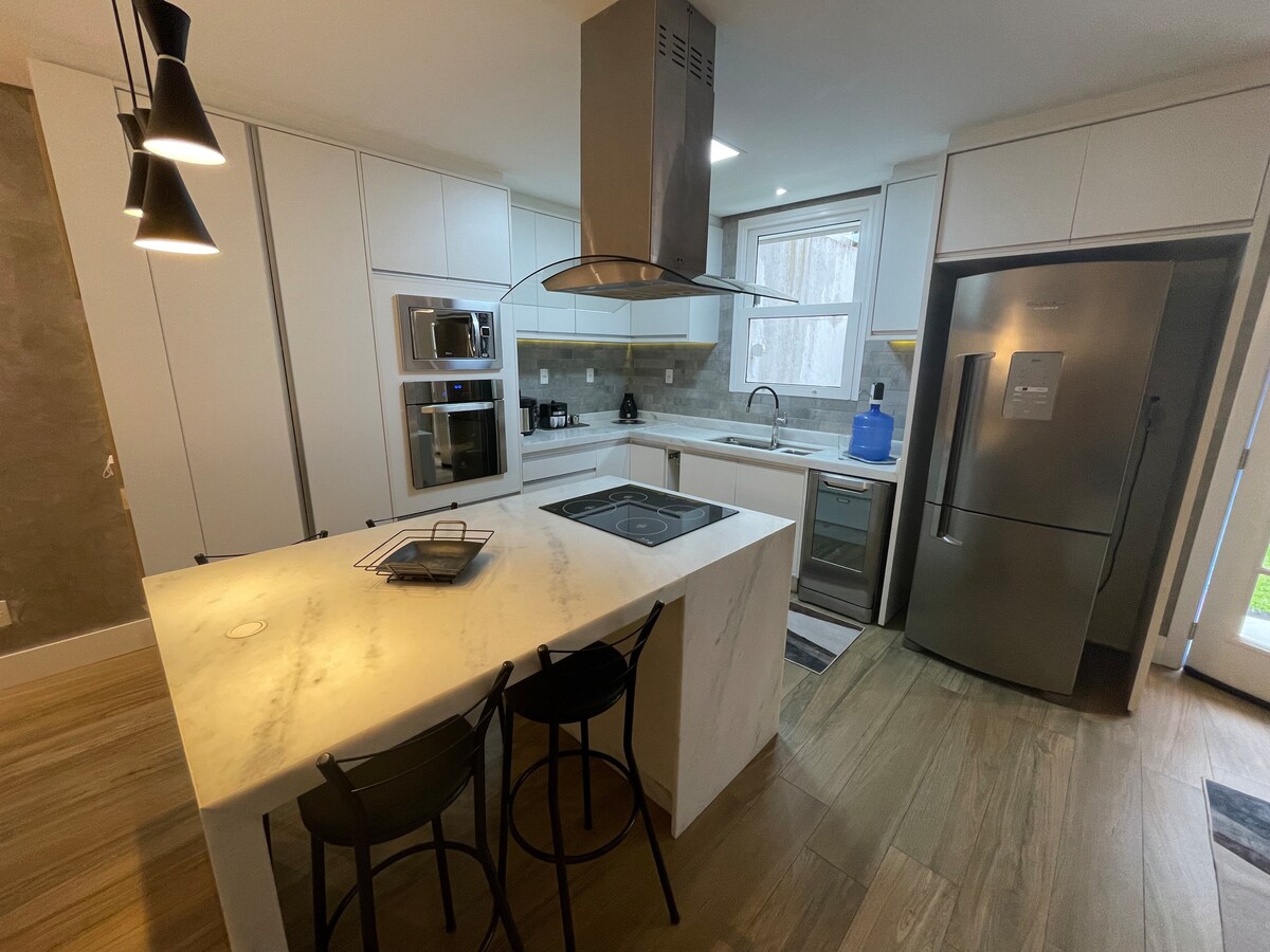 Ngôi nhà mới được xây dựng này, nằm trong một khu phố yên tĩnh chỉ cách Trung tâm Poços de Caldas 10 phút, được thiết kế cẩn thận để chứa tối đa 6 người một cách thoải mái. Với 2 phòng ngủ, mỗi phòng có phòng tắm riêng và bàn làm việc tại nhà, cộng với giường sofa trong phòng khách. Chỗ ở này cung cấp chỗ ở linh hoạt cho một kỳ nghỉ ấm cúng. Phòng khách rộng rãi, nhà bếp đầy đủ, nửa phòng tắm, tiệc nướng và 2 chỗ đỗ xe. Ngôi nhà kết hợp sự tinh tế, thiết thực và thanh lịch.