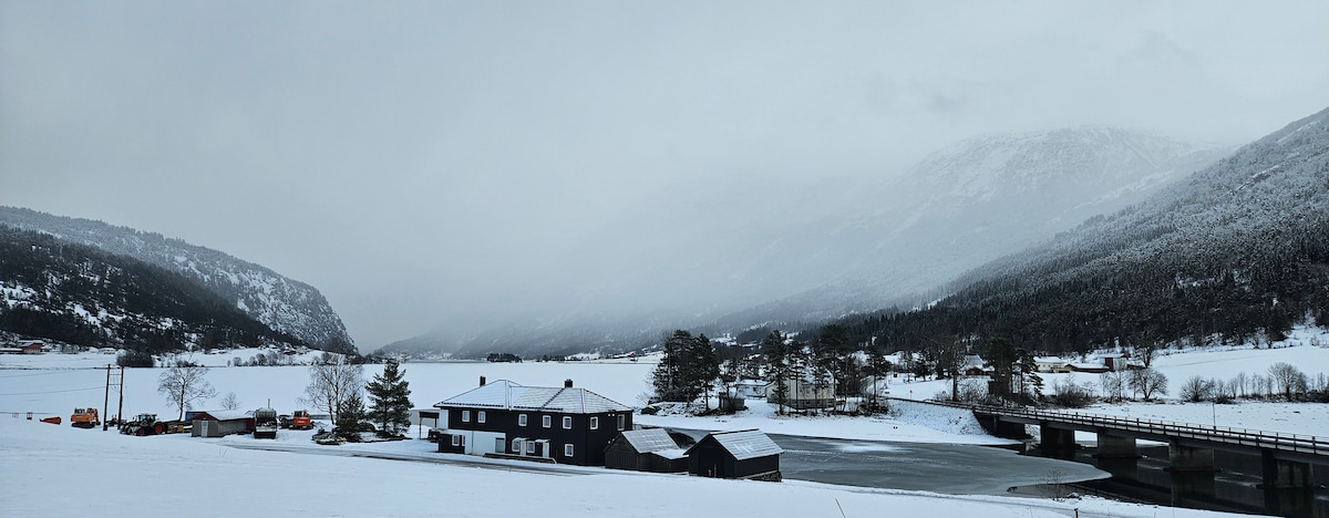 Căn hộ 3 phòng ở tầng trệt xinh đẹp của chúng tôi có sẵn để cho thuê. Hoàn hảo phù hợp với một cặp vợ chồng, một gia đình nhỏ hoặc 2-4 người bạn. Hai phòng ngủ riêng biệt. Khăn trải giường và khăn tắm được bao gồm. Bếp được trang bị đầy đủ để nấu ăn và ăn uống. Có truyền hình cáp và một chỗ ngồi đẹp trong phòng khách. Internet không dây nhanh. Nhà tắm lớn có vòi sen, máy giặt và máy sấy. Tầm nhìn đẹp ra Sognefjord và những ngọn núi. Khả năng đi bộ đường dài tốt. Chỗ ở đầy nắng. Bạn cần một chiếc xe hơi để đến đó.