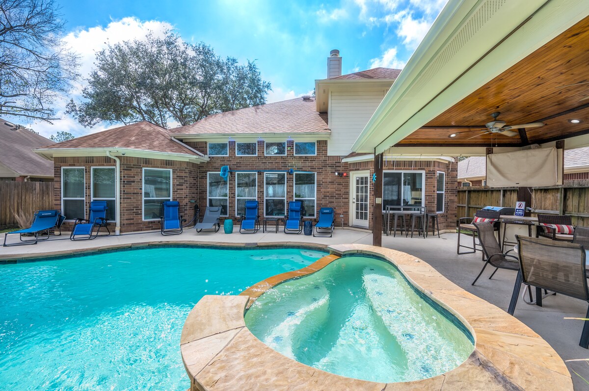 Thư giãn trong ngôi nhà sang trọng, thư giãn và rộng rãi của chúng tôi tại một trong những địa điểm thuận tiện nhất của Houston! ✔ Không có mất điện ✔ Hồ bơi có mục tiêu bóng rổ ✔ Hồ bơi đủ ánh sáng Hồ ✔ bơi nước nóng và Spa ✔ Bếp nướng ✔ PaknPlay & Phòng dành cho em bé TV 4k✔ cỡ lớn với nhiều phát trực tuyến ✔ Trò chơi cờ bàn ✔ Bàn bi-a ✔ Sân với nội thất và phòng ăn ✔ Hoàn hảo cho thời gian lưu trú dài, nhóm lớn và sự kiện Wi-Fi ✔ nhanh và không gian làm việc riêng ✔ Vệ sinh & Khử trùng chuyên nghiệp Nhà bếp ✔ đầy đủ tiện nghi Phòng ✔ giặt là Phòng ✔ em bé