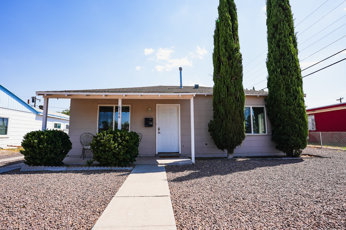 Chào mừng bạn đến với casita ấm cúng của chúng tôi! Hãy thư giãn cùng gia đình trong ngôi nhà 2 phòng ngủ mới được sửa sang lại của chúng tôi với mọi thứ bạn có thể yêu cầu. Cho dù bạn đi công tác, thăm gia đình hay khám phá El Paso, ngôi nhà xa nhà này sẽ không làm bạn thất vọng. Sân sau rộng rãi cho thú cưng đi du lịch. Tận hưởng những buổi sáng yên bình của El Paso trong khi nhấm nháp cà phê rúc dưới chăn trên ghế sofa ngọt ngào của chúng tôi. ★ '' ...Có lẽ là AirBnb có vị trí tốt nhất ở El Paso!"