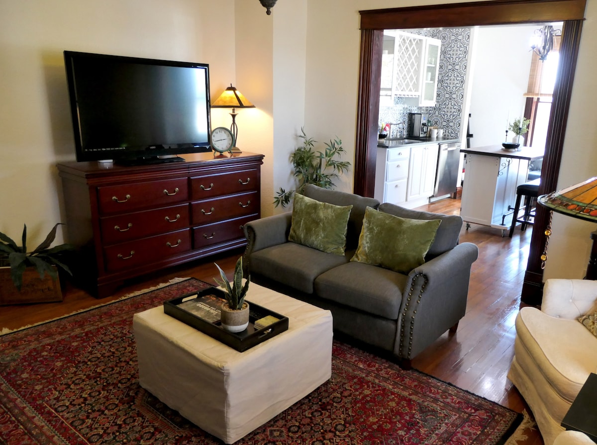 Studio nhà khách được tu sửa hoàn toàn trên một khu đất rộng 1/2 mẫu Anh. Căn hộ này có khu vực ngoài trời riêng được trang bị BBQ gas và bàn ăn ngoài trời. Nó có phòng tắm đầy đủ kích thước với bảng vòi sen hiện đại và hệ thống sưởi/làm mát yên tĩnh hiện đại. Bếp nhỏ nên không có lò nướng; thay vào đó có lò vi sóng/máy sấy không khí/Tổ hợp lò nướng. Một bếp nấu hai bếp và một máy nướng bánh mì /máy pha cà phê kết hợp. Futon biến thành một chiếc giường Queen thoải mái. Cũng có rất nhiều chỗ đỗ xe tại chỗ ở.