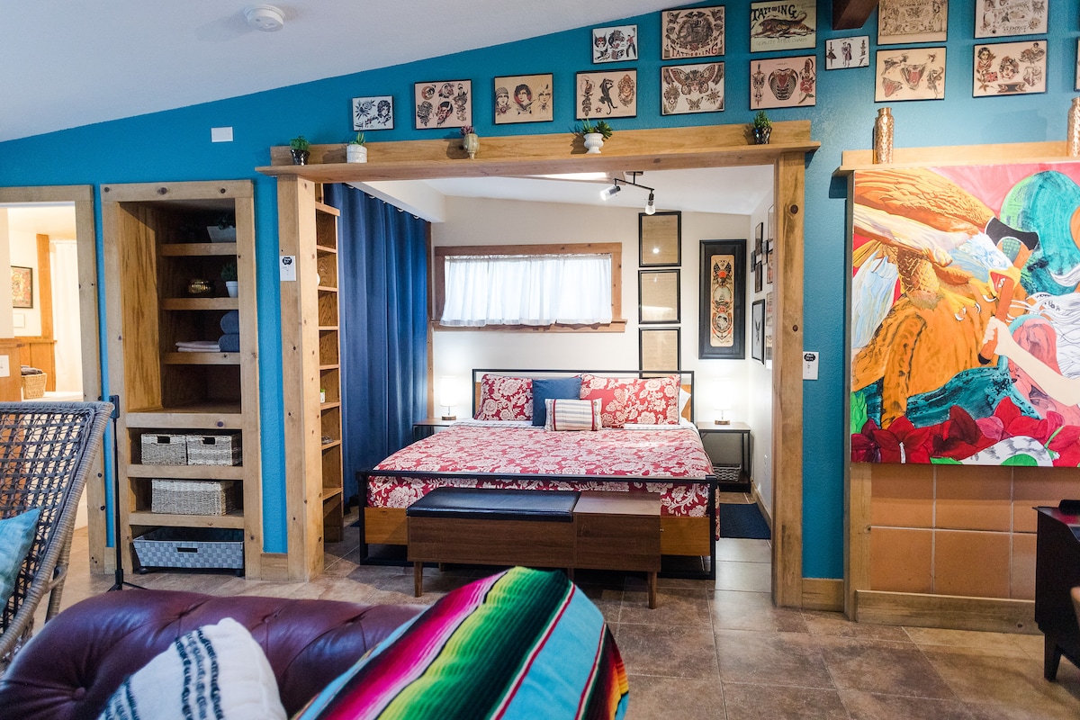 Thư giãn trong ánh sáng tự nhiên và các cuộc hẹn sang trọng của studio hiện đại này nép mình trong một công viên thành phố và gắn liền với ngôi nhà chính của chúng tôi. Được cải tạo đẹp mắt và tràn ngập ánh sáng, rộng rãi 375 ft vuông là ngôi nhà hoàn hảo của bạn để khám phá những kỳ quan của Flagstaff và phía bắc AZ. Các tiện nghi như ga trải giường sang trọng, bếp nhỏ đầy đủ đồ và TV thông minh kết hợp với các chi tiết bổ sung như giặt ủi, vòi sen trong rừng nhiệt đới, sân hiên chung thư giãn và wi-fi 400 MB. Lưu ý: Không có A/C. Chào mừng bạn!