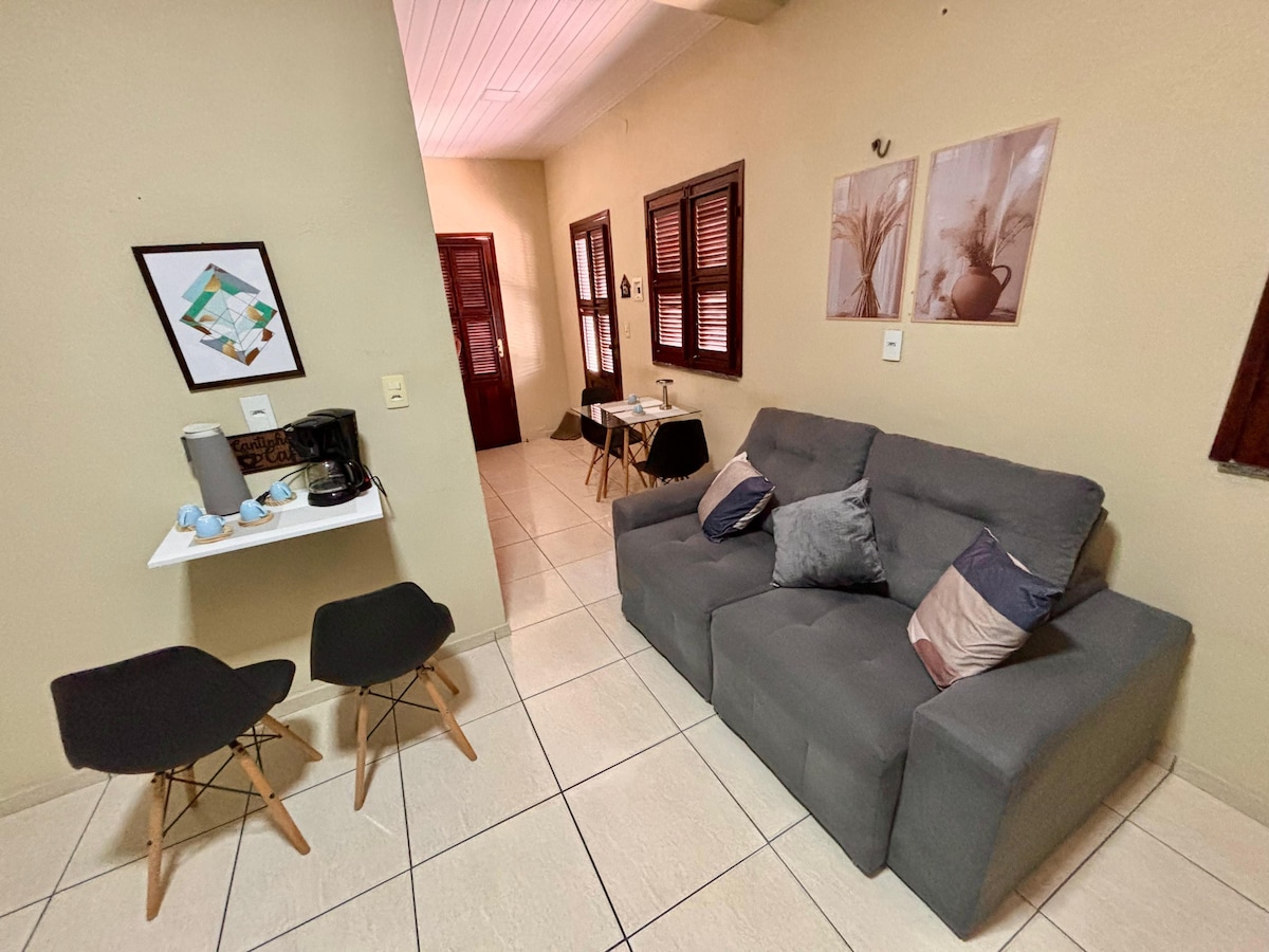 Ngôi nhà phong cách, với các tác phẩm nghệ thuật, trong một biệt thự yên tĩnh và an toàn cách bãi biển Iracema 15 phút. Đây là khu vực có diện tích 130m², với 2 phòng tắm, 2 phòng ngủ (1 tầng lửng lớn có giường đôi, phòng tắm và tủ quần áo; và 1 phòng ngủ), phòng khách, nhà bếp và sân thượng được trang bị - cho tối đa 4 người. Vila Nanan nằm trên một con đường cụt, có cổng, camera và giám sát. (Có giảm giá cho thời gian lưu trú dài hơn). Toàn bộ không gian riêng tư. Không được phép tổ chức tiệc tùng và sự kiện.