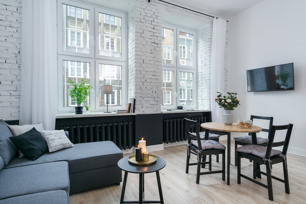 Elegancki apartament na Starym Mieście z widokiem na Bazylikę Mariacką — w sercu Gdańska, a jednocześnie spokojny i cichy. Przestronne wnętrze z dwiema sypialniami dla 4 Gości. W pełni wyposażona kuchnia, łazienka z deszczownicą, nienaganna czystość i parking— rzadkość w tej lokalizacji. Stworzony dla Gości ceniących komfort, styl i bezproblemowy pobyt. Idealny na spokojne poranki, spacery i urocze wieczory nad rzeką. Gospodarz Agata — Superhost znana z 5★ obsługi i indywidualnego podejścia.