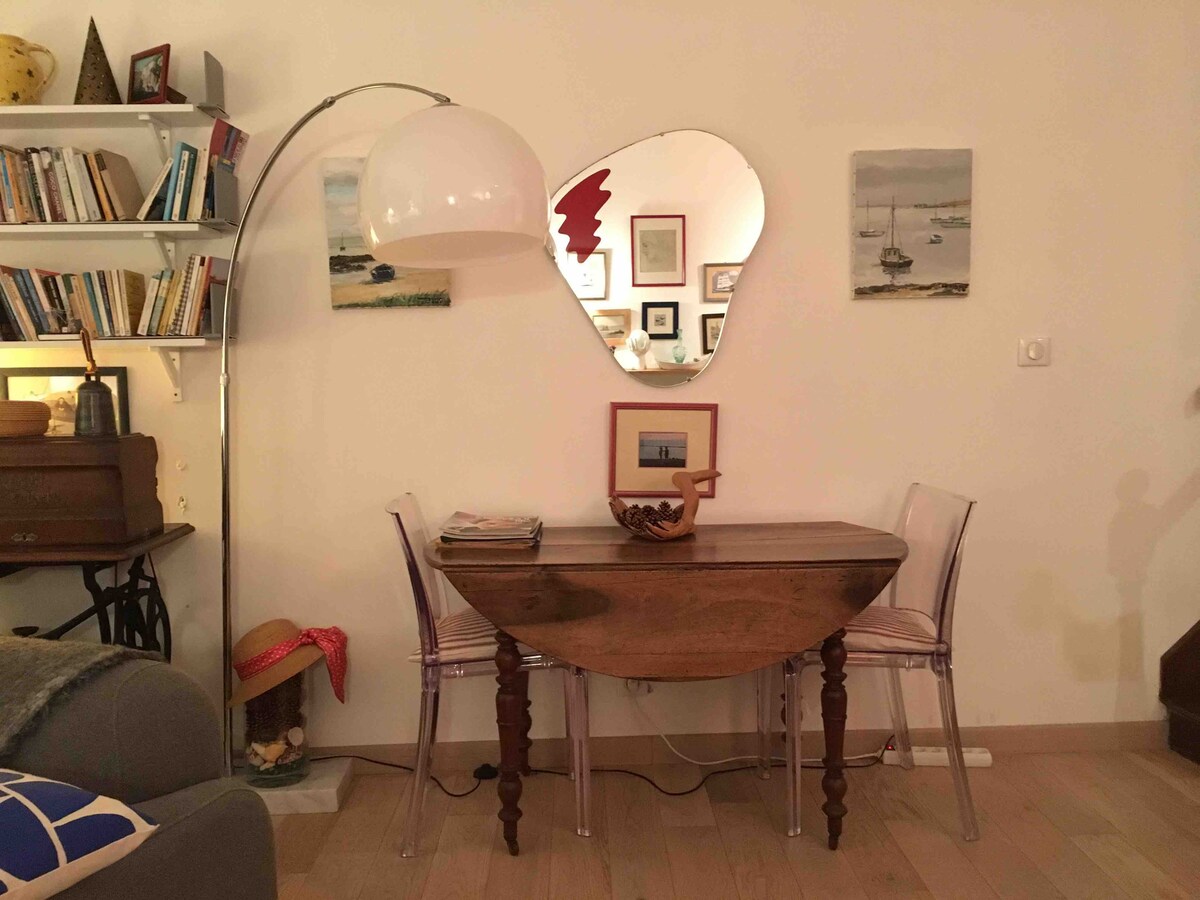 Căn gác trong căn hộ 2 tầng rộng 30m2 này (cách bãi biển 5 phút đi bộ), được thiết kế và suy nghĩ cho một kỳ nghỉ chăm sóc sức khỏe cho 2 người. Một bể sục jacuzzi riêng thực sự, một phòng mát-xa, giường cỡ Queen với tầm nhìn ra các vì sao và một khu vườn riêng rộng 25m². Khu phố rất yên tĩnh. Rất ấm cúng, căn hộ hai tầng này được trang bị rất tốt: nhà bếp được trang bị, cốc sâm banh, mọi thứ cho bữa tối và bữa sáng, lò vi sóng, nespresso, ghế sofa, TV kết nối, đèn LED, wifi, loa trợ lý giọng nói, spotify, nhà vệ sinh riêng, vòi sen, máy sấy phục vụ, máy lẻ thân mật.