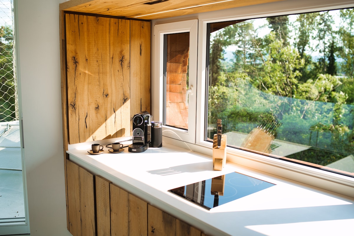 The apartment 50m2. Newly built Wooden House in 2022. The highlight is the 15 m wooden balcony built into the trees. Modern English wooden kitchen , refrigerator, electric stove , dishwasher, smoothie maker asl well al SMEG coffee machine, Media TV , 1 Bedroom : 180x200 m bed as well a 1 small single bed. a Futonsofa which coverts into a compromise sleeping place 180x200 m can be used as extra sleeping facility in the living room.