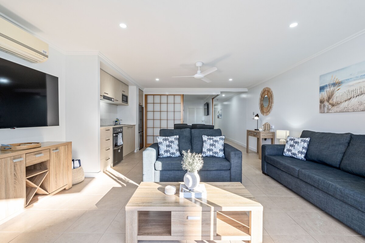 Thức dậy với âm thanh của sóng và tầm nhìn toàn cảnh đại dương từ căn hộ hiện đại, sáng sủa này ở trung tâm Bargara. Chỉ cách các bãi biển tuần tra, công viên cây xanh và một dải quán cà phê và nhà hàng quyến rũ vài bước chân, đây là nơi nghỉ ngơi hoàn hảo cho gia đình, bạn bè hoặc người làm việc từ xa. Thư giãn trên ban công riêng của bạn với gió biển và whitecaps ở đường chân trời - đây là sự sang trọng ven biển ở mức tốt nhất.
