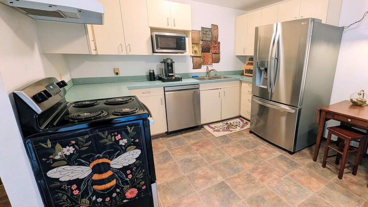 Thoát khỏi chỗ ở thanh bình của chúng tôi với giường cỡ king sang trọng và các tiện nghi chu đáo để mang lại sự thoải mái lâu dài, bao gồm cả máy hút bụi. Thư giãn với TV Roku 50’, cung cấp dịch vụ phát trực tuyến miễn phí một thư viện phim/chương trình truyền hình rộng lớn theo yêu cầu. Bếp nhỏ được trang bị bếp điện và tổ hợp nồi chiên không khí/lò nướng, hoàn hảo cho các bữa ăn tự làm. Phòng trọn gói của chúng tôi cung cấp hỗ trợ 24/7, đảm bảo thời gian lưu trú suôn sẻ. Trải nghiệm sự quyến rũ của căn hộ riêng của chúng tôi, được thiết kế với sự thư giãn tối đa của bạn.