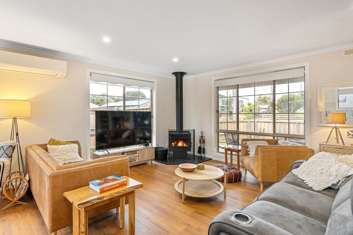 Thư giãn và thư giãn tại nơi nghỉ dưỡng yên bình trên bãi biển này Tận hưởng kỳ nghỉ ấm cúng của gia đình gần bến thuyền và điểm câu cá tốt nhất của Western Port. Chỉ cách Đảo Phillip 30 phút, ngôi nhà này có tất cả ga trải giường, quạt trần trong phòng ngủ và không gian cho thuyền hoặc máy bay phản lực trượt tuyết. Đi bộ đến bãi biển thân thiện với thú cưng, thư giãn trong hang động man với bếp củi và thiết lập trò chơi, hoặc khám phá sân golf mini gần đó, công viên koala, chợ thực phẩm tươi sống và nhà máy pho mát. Hoàn hảo để câu cá, khám phá hoặc thư giãn!
