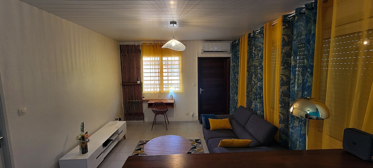 Studio nằm giữa Cayenne và Montjoly, gần trung tâm mua sắm. Nó tận hưởng sự yên tĩnh của vùng nông thôn, trong một khu vực có hàng rào và an toàn. Bao gồm một phòng khách lớn: khu vực ngồi, khu vực ngủ và bếp nhỏ đầy đủ tiện nghi. - tiện nghi: điều hòa không khí, TV (TNT và vệ tinh), cáp quang và wifi.- Đối với bếp: tủ lạnh, lò nướng điện và lò vi sóng, bếp nấu(2 đám cháy) và thiết bị gia dụng nhỏ. - Có một chỗ đỗ xe. -