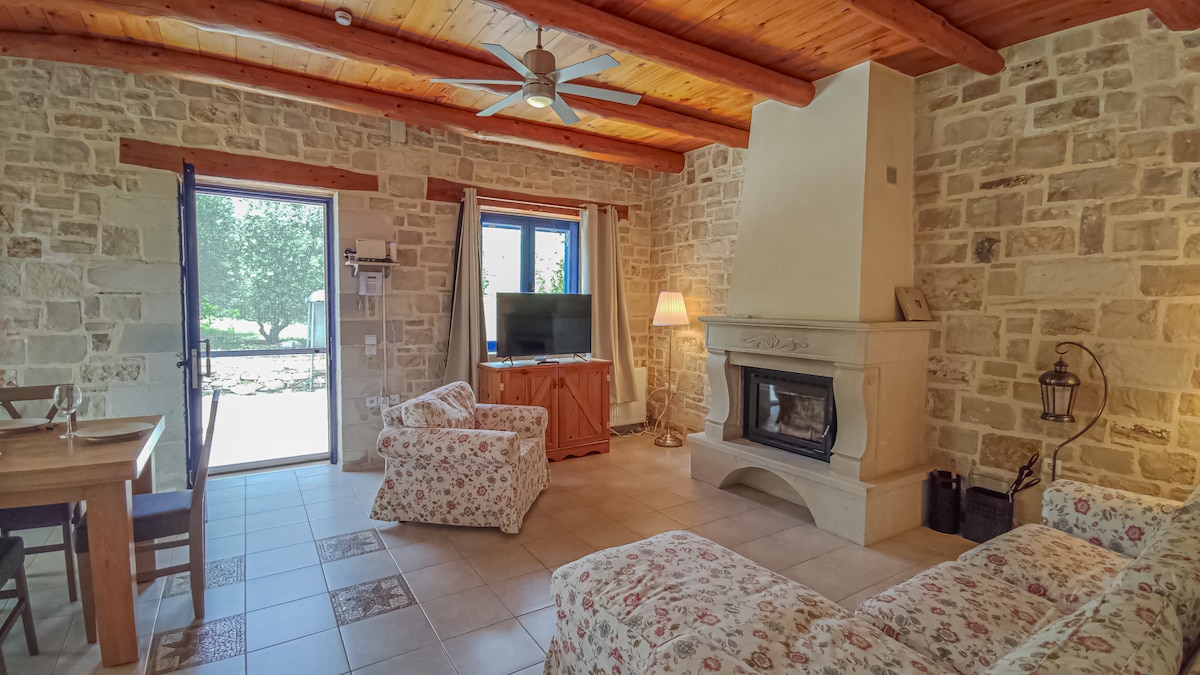 Một khu phức hợp được cải tạo hoàn toàn, được xây dựng bằng đá được xây dựng dựa trên ba hang động Hy Lạp cổ đại. Nó từng là một nhà máy ép ô liu của Venice. Bây giờ, đây là một ngôi nhà nghỉ dưỡng đương đại với hai hồ bơi (trong nhà và ngoài trời) và một vườn rau hữu cơ và trái cây địa phương