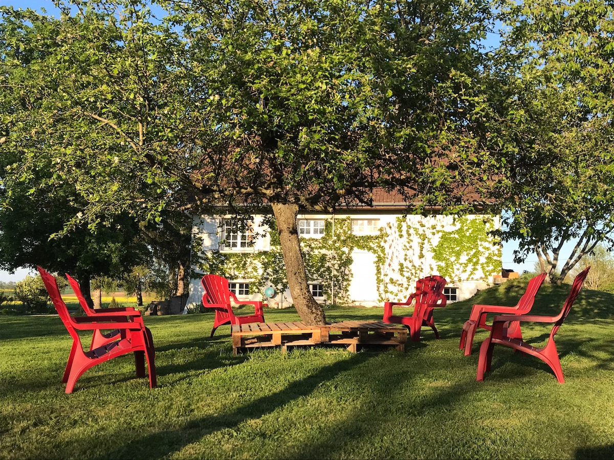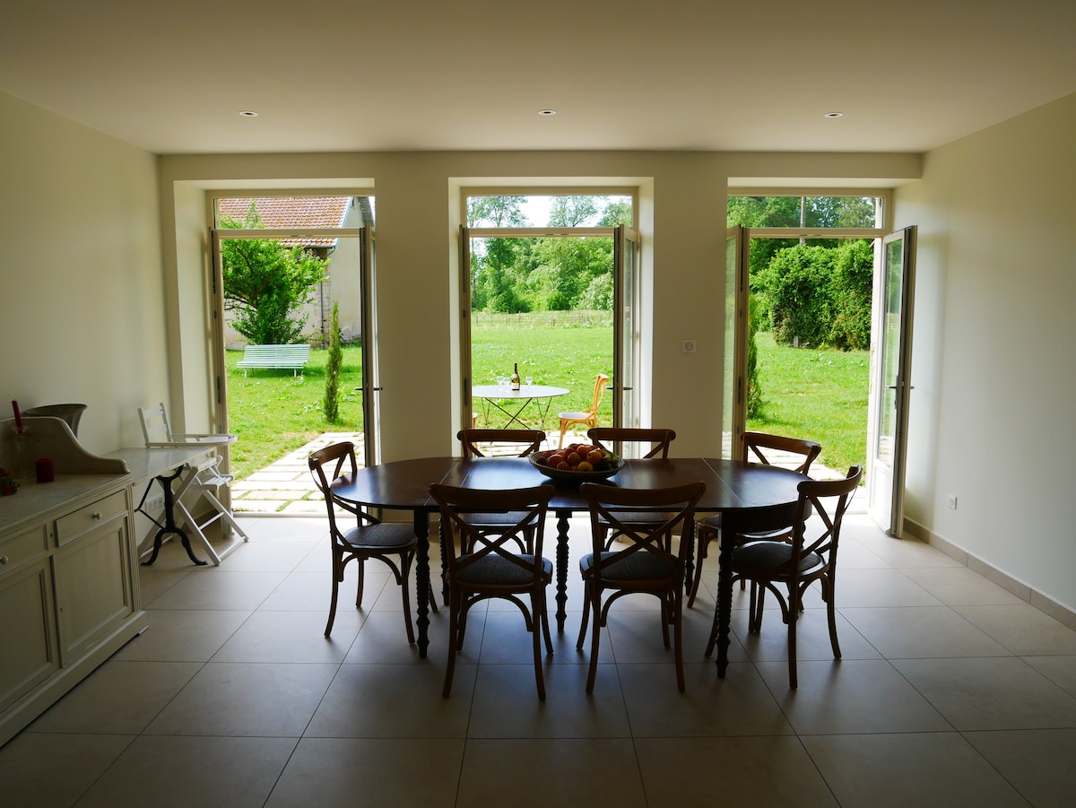 Bạn có muốn thư giãn trong vài ngày không? Nhà này dành cho bạn. Ngôi nhà được khôi phục hoàn toàn, gần lâu đài tráng lệ của thế kỷ XVII, giữa núi và hồ Jura, ngôi nhà bressane hấp dẫn được khôi phục độc lập một cách trang nhã. Địa điểm bình tĩnh lại với mặt đất liền kề, nguồn nước, sân hiên, xích đu, bóng bàn, mặt đất của các quả bóng. Nó còn trống cho 8-10 khách (với 4 phòng ngủ và 2 phòng tắm). Chúng tôi có bếp được trang bị đầy đủ tiện nghi, một thẩm mỹ viện lớn và lò sưởi. Bạn có thể chơi bên ngoài (sân lớn). Chúng tôi nằm không quá xa Beaune (thủ đô của rượu vang). Nó chỉ cách nhà nghỉ của chúng tôi 20 dặm. Bạn có tất cả những thứ cần thiết trong nhà. Vui lòng liên hệ với chúng tôi để biết thêm thông tin.