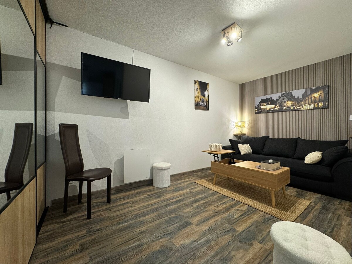 Căn hộ 1 phòng ngủ đẹp nằm ở tầng 2 của một tòa nhà thế kỷ 19 nhìn ra sân trong. Ngay tại trung tâm lịch sử của Dole với bãi đỗ xe cách đó 2 phút đi bộ, theo phong cách gọn gàng, nó kết hợp hoàn hảo giữa thẩm mỹ và thiết thực. Hoàn toàn phù hợp cho khách du lịch và chỗ ở chuyên nghiệp. Nó bao gồm một nhà bếp đầy đủ tiện nghi, khu vực sinh hoạt với giường gấp, phòng tắm, nhà vệ sinh và ban công Cách đó vài bước, nhà hàng, phòng trà, giặt ủi, cửa hàng tạp hóa, v.v. Ga tàu hỏa cách đó 10 phút.