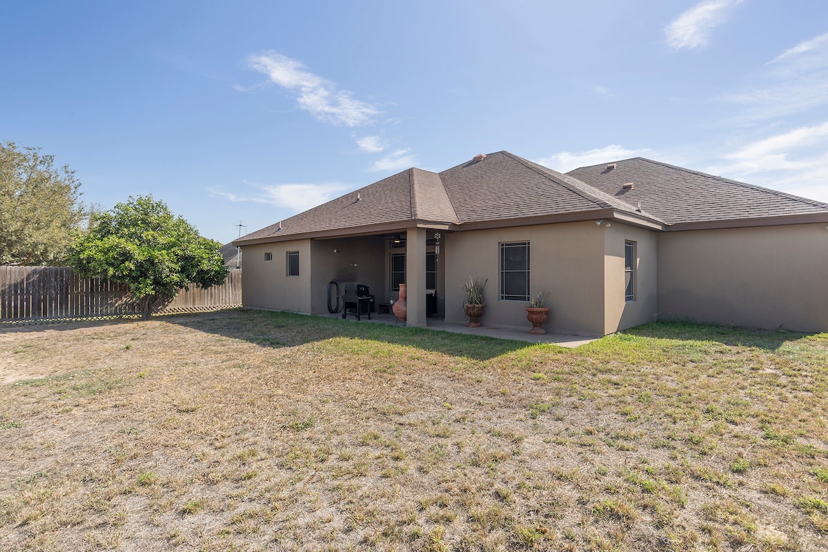 Spacious & Peaceful 4 bedroom, 3 bath 2100 sft living home located right behind Hospital in Rio Grande City. Minutes away from Expressway 83. All bedroom come with queen and king size beds. Relax and unwind in jacuzzi. Enjoy a cup of coffee on the back patio with seating and large fenced in back yard.