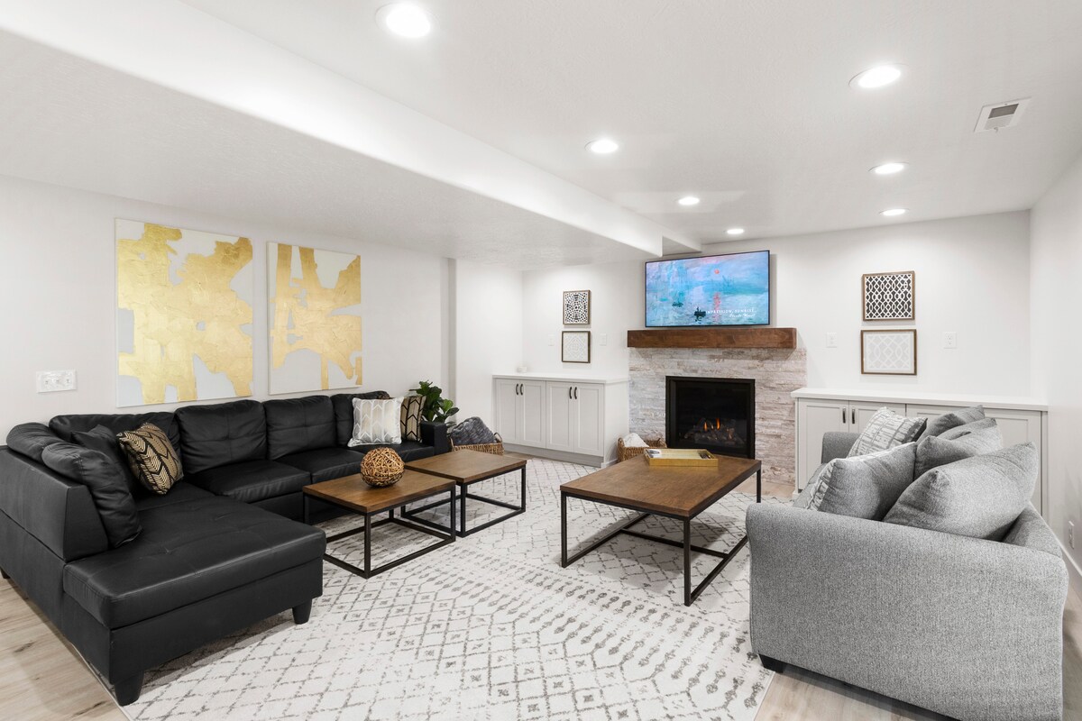Bao gồm MÁY GIẶT VÀ MÁY SẤY! Ngủ, nhảy múa và chơi đùa trong căn hộ tầng hầm tuyệt vời này. Gần Thành phố Salt Lake, Đền Layton LDS, Lagoon, Đảo Antelope! Mở bếp/sàn nhảy với loa DJ để thỏa mãn tâm trạng của bạn. Hai phòng ngủ riêng theo chủ đề với giường queen và giường cỡ lớn, và một tấm nệm cỡ king theo phong cách studio. Lò sưởi giả ấm cúng, vì vậy hãy ôm ấp và xem một bộ phim. Máy giặt/máy sấy, TV, wifi, karaoke, trò chơi, mini-foosball, phòng tắm có bồn tắm và vòi sen, và bãi đỗ xe trên đường lái xe.