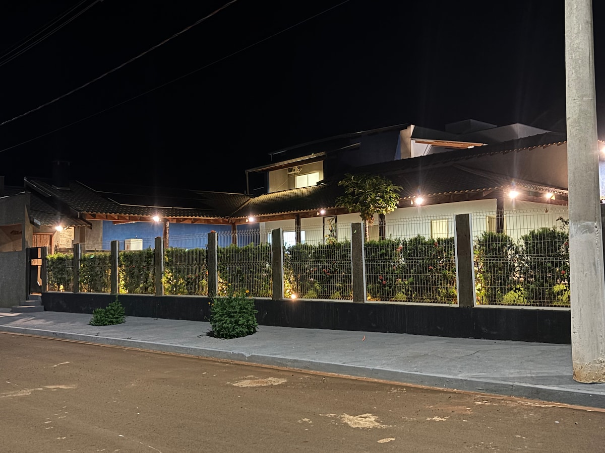 Nông trại với 2 phòng ngủ, 1 phòng suite, khu vực dành cho người sành ăn, phòng khách, bếp nướng BBQ, Wi-Fi và được trang bị nội thất. Cách Clube Nautico Fronteira 5 phút đi xe hơi và cách Rio Grande 200 m. Nằm trên một ngõ cụt, trên đường phố chính của chợ, vị trí siêu yên tĩnh! Nó chắc chắn sẽ vượt quá mong đợi của bạn!