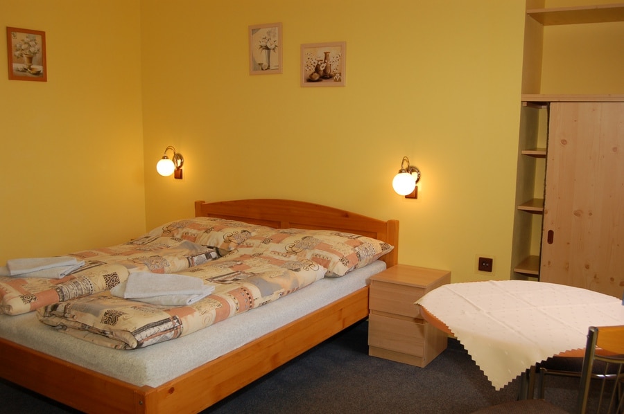 Phòng rộng rãi có giường đôi hoặc giường đơn trang trí đáng yêu trên đồ nội thất. Cảnh đẹp về lâu đài. Với bộ trà và cà phê. Wi-fi và TV/SAT. Oun badroom với vòi sen, nhà vệ sinh, tháp, máy sấy tóc và đồ vệ sinh cá nhân. Vị trí được trích dẫn gần trung tâm thành phố. - khoảng 10 phút đi bộ đến trung tâm thành phố 500 m. Lâu đài cách khoảng 5 phút đi bộ, 300 m . Ga Špičak cách khoảng 10 phút đi bộ và ga AN cách khoảng 20 phút đi bộ. Ga tàu hỏa cách đó 20 phút đi bộ. Bản fax thành phố là 50 CZK//ngày. Chỗ đỗ xe thêm 150 CZK/ngày.