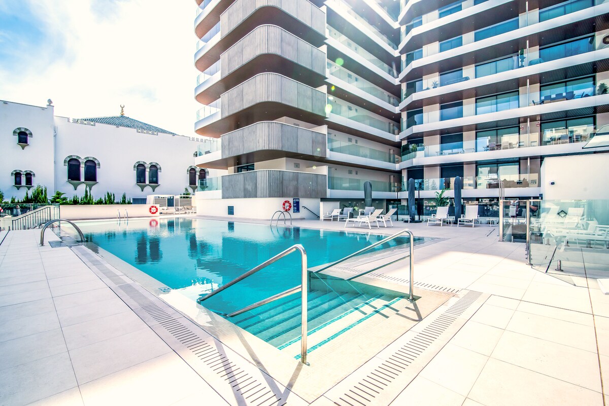 Chào mừng bạn đến với kỳ nghỉ ven biển tại Aria by the Beach, một khu nghỉ dưỡng uy tín mang đến sự pha trộn hoàn hảo giữa sự sang trọng, phong cách và sự yên tĩnh trên Costa del Sol. Căn hộ tiền tuyến tuyệt đẹp này hứa hẹn một kỳ nghỉ khó quên, với từng chi tiết được thiết kế để tạo sự thoải mái và thư giãn. Bên trong, khu vực sinh hoạt không gian mở hiện đại có nội thất thanh lịch, không gian ăn uống cho 6 người và tầm nhìn toàn cảnh Địa Trung Hải.
