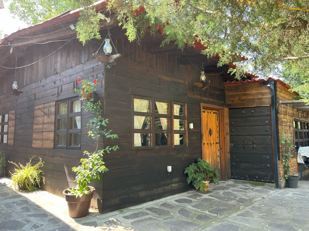 Cozy forest SUITE, views of nature, volcanoes, city, sky. Mountain magic. Chimney. Relax and enjoy in a safe environment, 1100m over Mexico City. 40 minutes from Interlomas and Toluca. Ideal for a love, family or friend’s getaway. Get inspired, hike, homework, or acclimatize to the altitude for a competition. Sunny hillside. Country houses area with surveillance, near new highway. Living room, fireplace, dining room, kitchenette, 2 bedrooms, 2 bathrooms, hot water, grill, screen, Wi-fi.