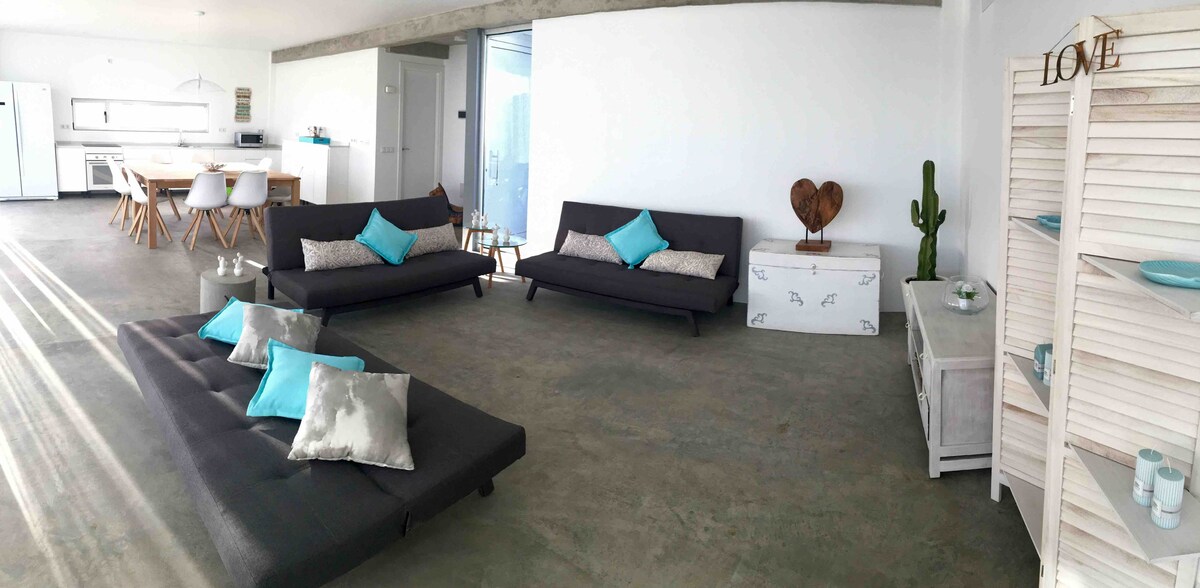 Ngôi nhà mơ ước trên tài sản riêng, trong khoảng cách đi bộ từ khu bảo tồn thiên nhiên, El Saladar de Jandia và bãi biển dài 30 km, Playas de Jandia. Nhìn ra biển. Được trang trí tinh tế với một số góc thư giãn; các gia đình lớn có thể ở cùng nhau và chưa cá nhân, cho chính bạn. Sân thượng có mái che với lò nướng ngoài trời, bàn ăn và góc ghế sofa, nơi bạn có thể TẬN HƯỞNG nhiệt độ ôn hòa của Quần đảo Canary, quanh năm BÊN NGOÀI. Bạt nhún 3,6 m2 trên sân.