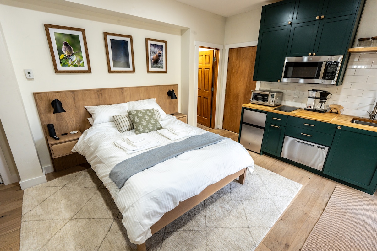 "Ở lại một thời gian", một studio lớn cách Vail & Beaver Creek vài phút nép mình bên một con lạch bập bẹ và một con suối tự nhiên. Lối vào riêng an toàn, nhà bếp, phòng tắm đầy đủ, phòng khách và phòng ăn, lò sưởi gas, giường queen, WIFI, TV, sàn gỗ cứng, đêm đầy sao và cây thông khổng lồ mang lại sự riêng tư, làm cho đây trở thành nơi nghỉ ngơi lý tưởng trên núi Colorado. Đối với khách cần thêm không gian, bạn có thể đặt phòng bổ sung tại "Unwind" ngay trong phần "Stay Awhile". Phòng này có giường cỡ queen, phòng tắm và W/D.